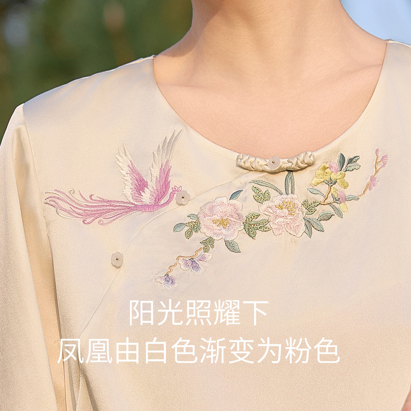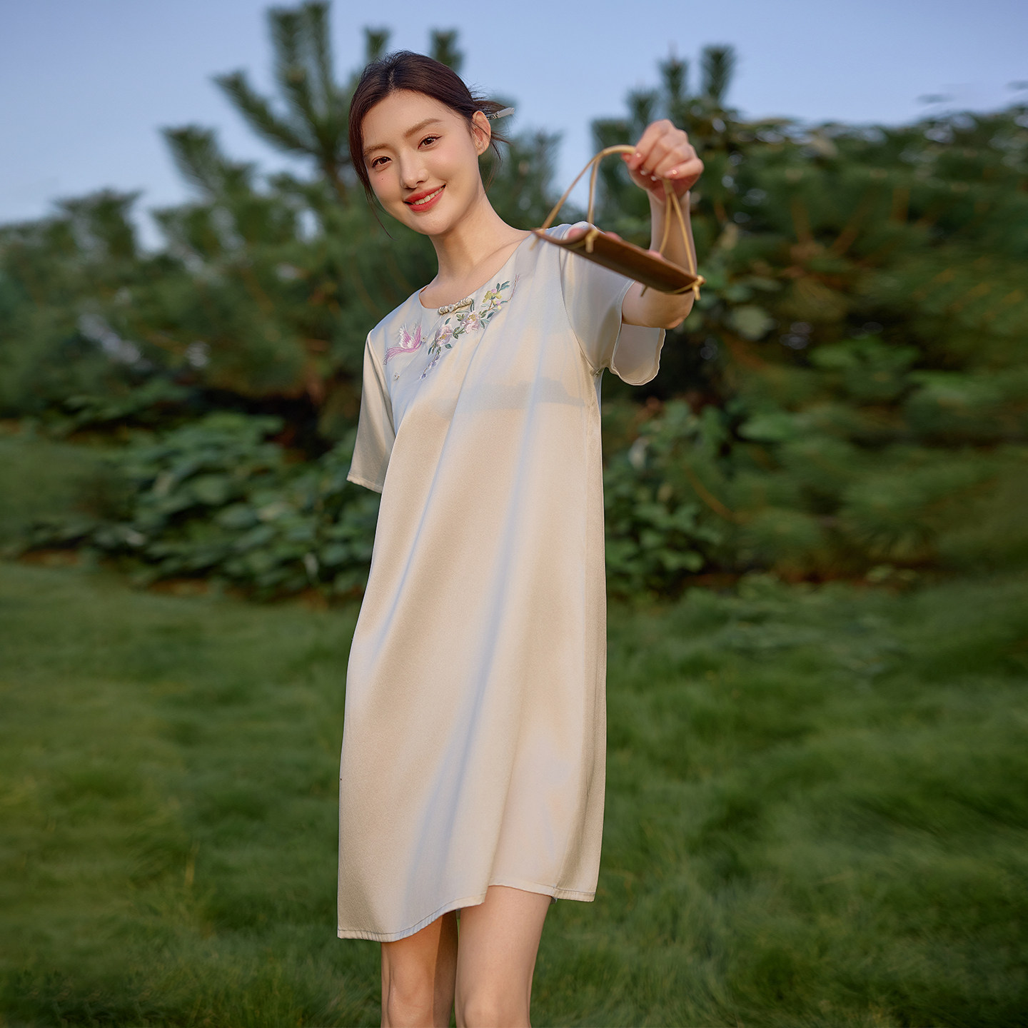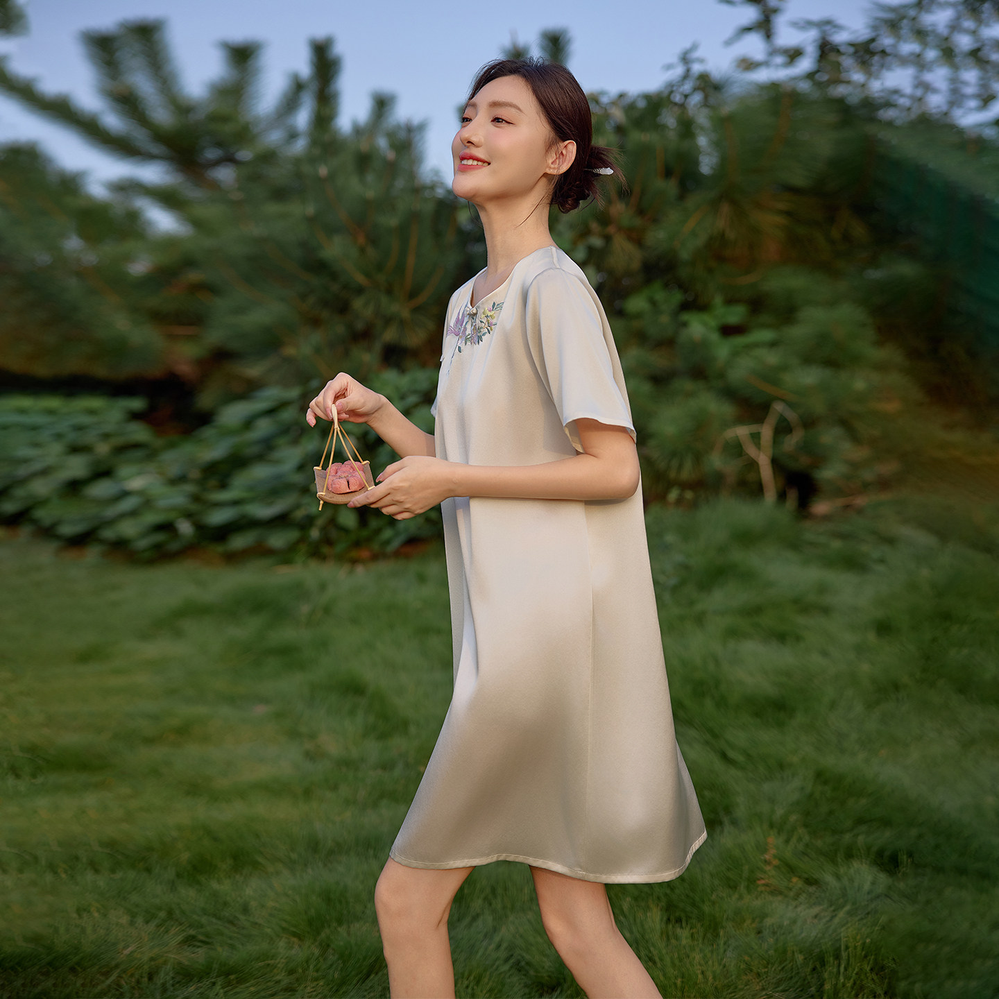 『浙江精品·绽放系列』美标春夏真丝睡裙手工刺绣盘扣睡衣家居服