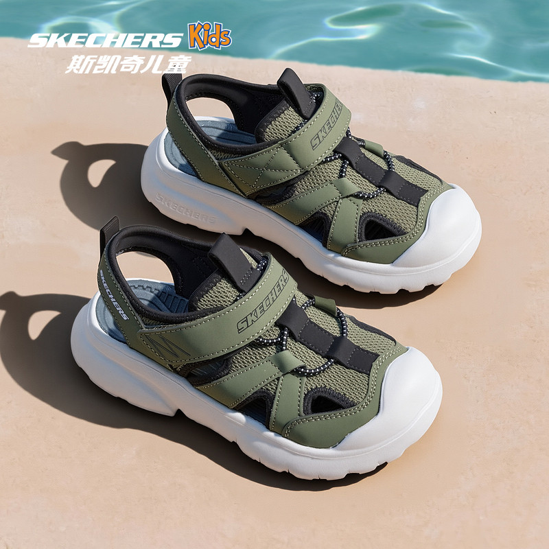 Skechers斯凯奇男童夏季轻盈舒适包头凉鞋儿童透气休闲运动凉鞋