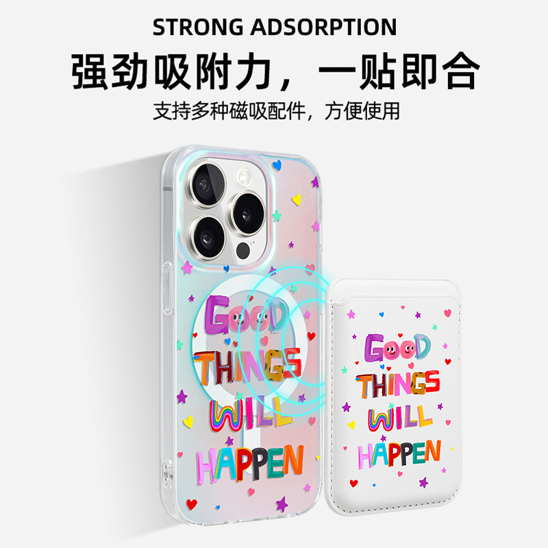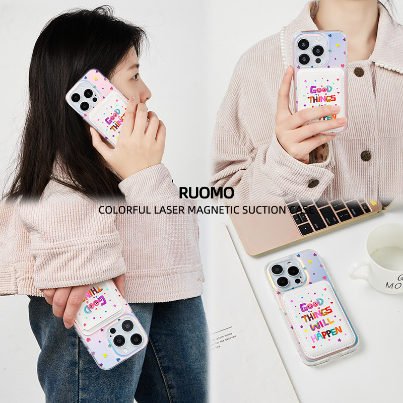 若墨适用苹果17promax手机壳新款iphone16pro女15磁吸创意14彩色字母卡包13卡套简约时尚镭射小众12新年2026