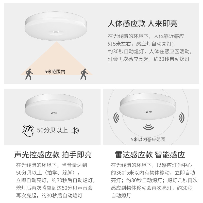 LED感应吸顶灯感应灯楼梯过道家用楼道走廊红外雷达人体声控护眼