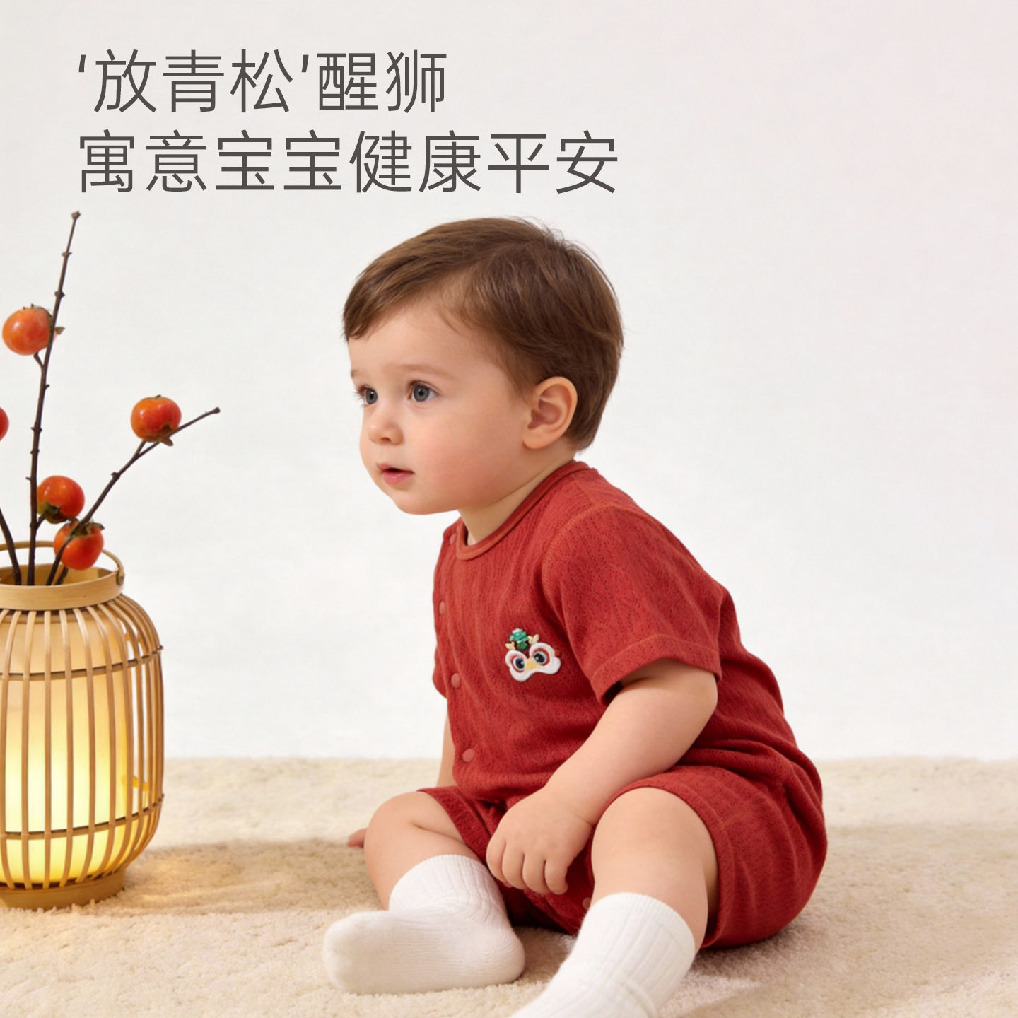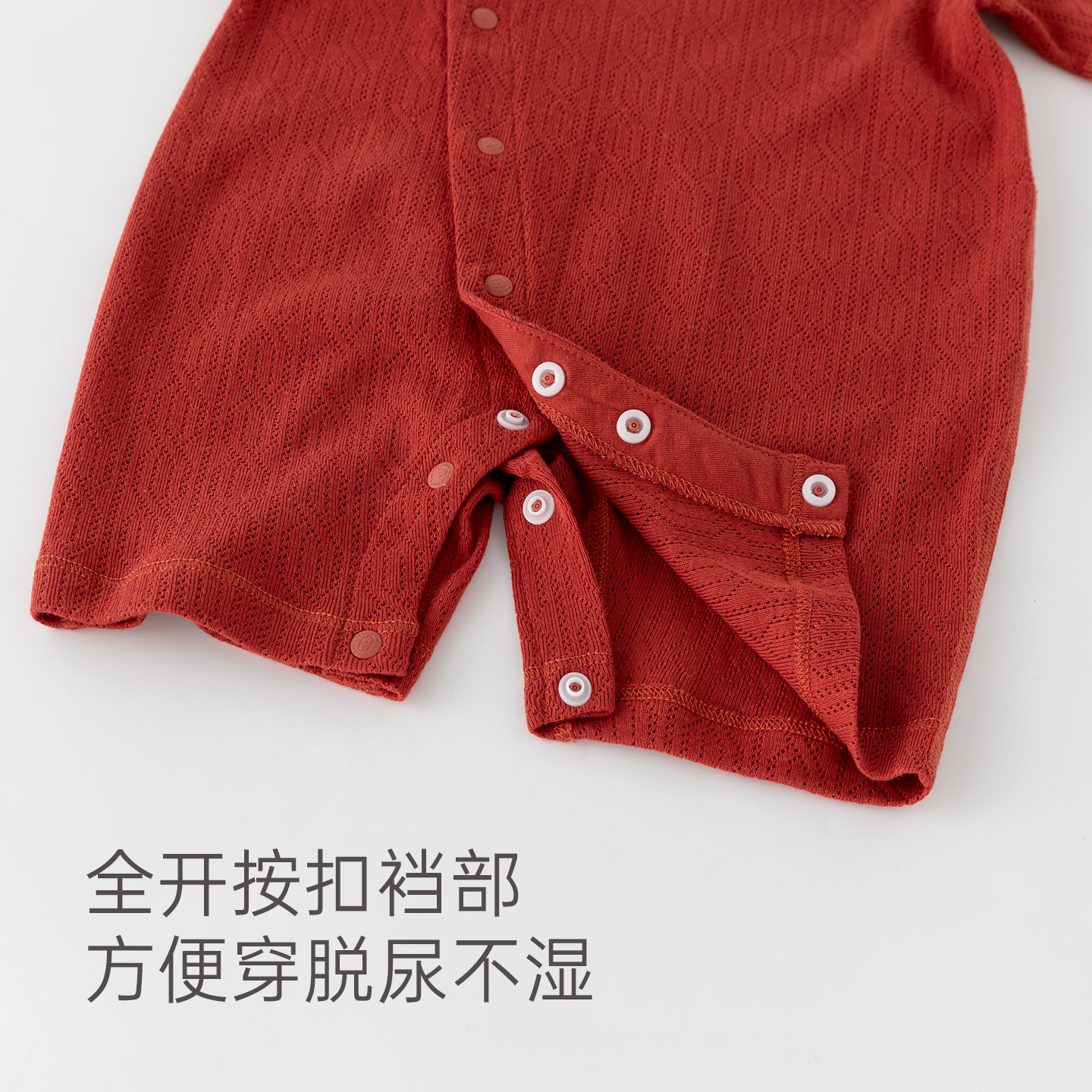 木生棉婴儿夏季薄款短袖连体衣宝宝红色新年服周岁服纯棉哈衣爬服