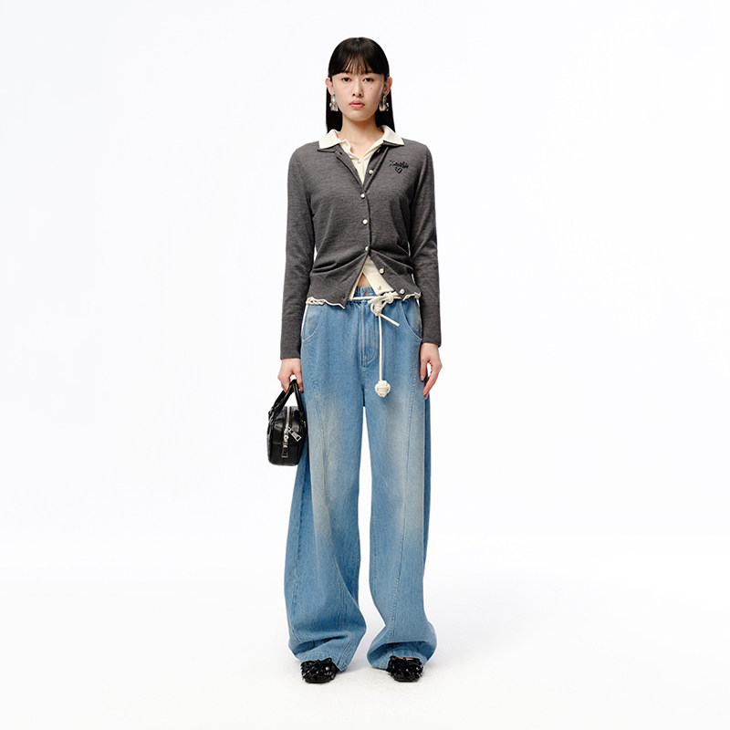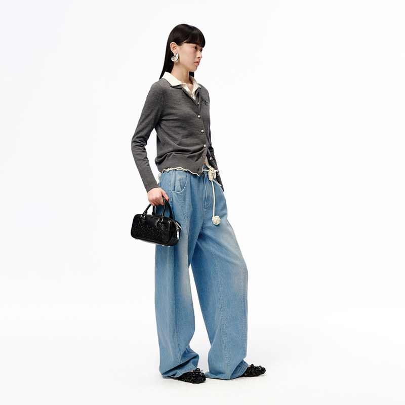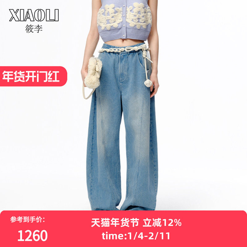 XIAOLI筱李 设计师品牌明线香蕉型阔腿牛仔裤