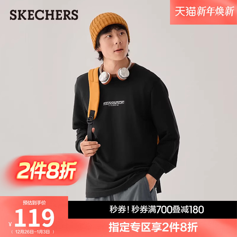 斯凯奇2025秋冬新款男女同款针织长袖T恤衫打底衫休闲运动衫卫衣
