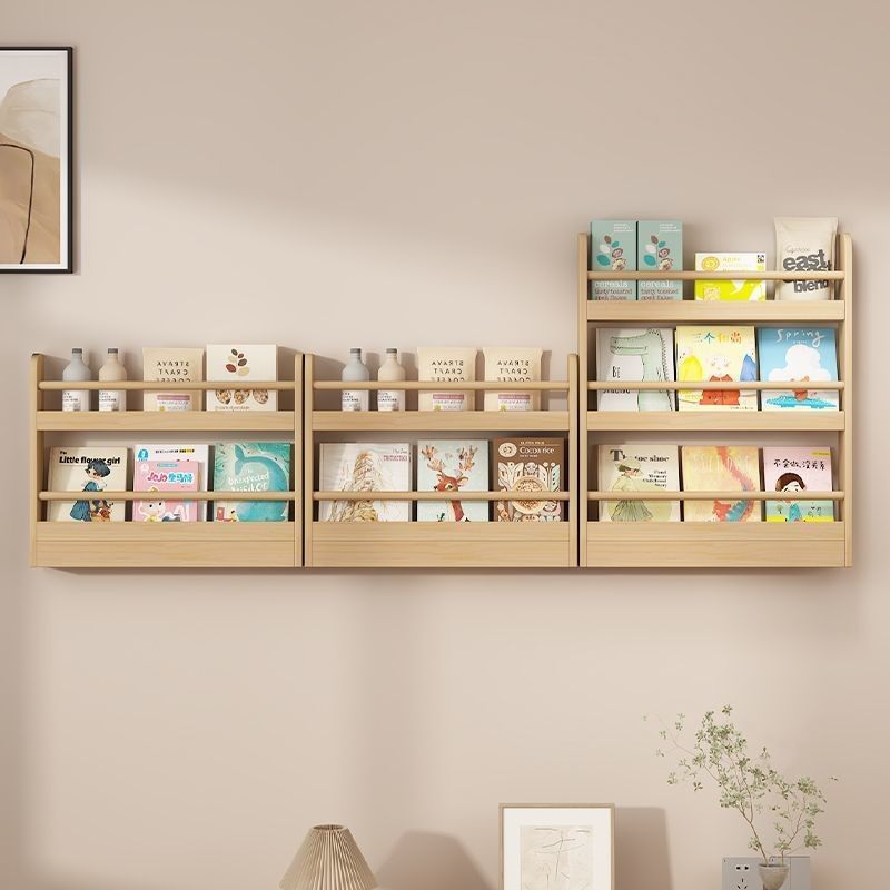 实木书架置物架阅读区书柜玄关书架收纳架落地多层壁挂墙上展示架