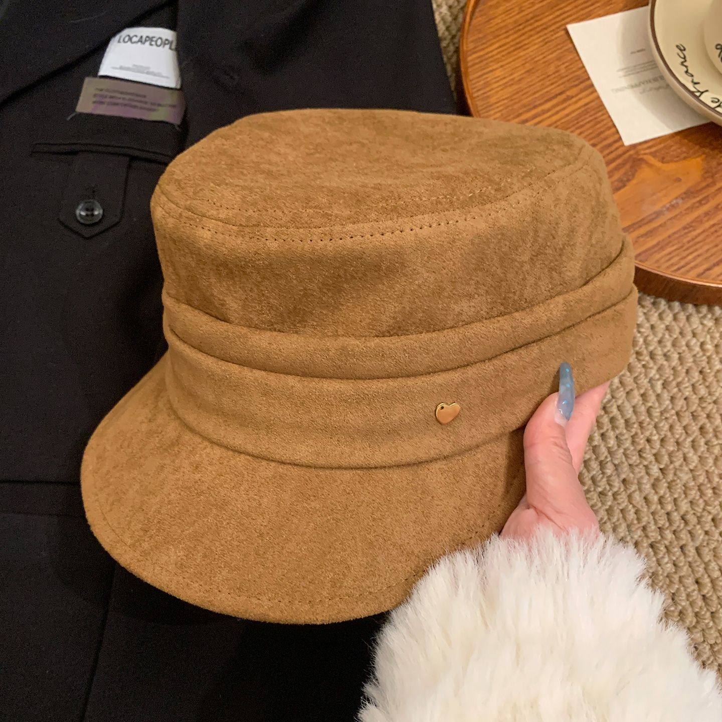 贝雷帽女2025新款复古仿麂皮马术帽子秋冬季报童帽显脸小咖色休闲
