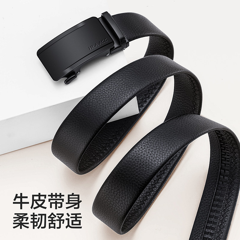 HLA/海澜之家男士皮带新款真皮自动扣时尚百搭头层牛皮送男友