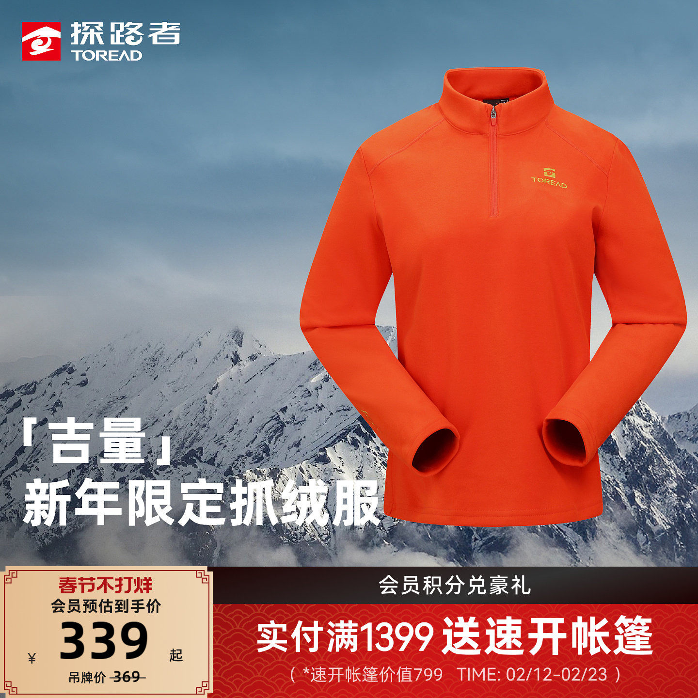 [吉量]探路者商场同款红色抓绒衣男女新年款保暖衣轻量立领防静电