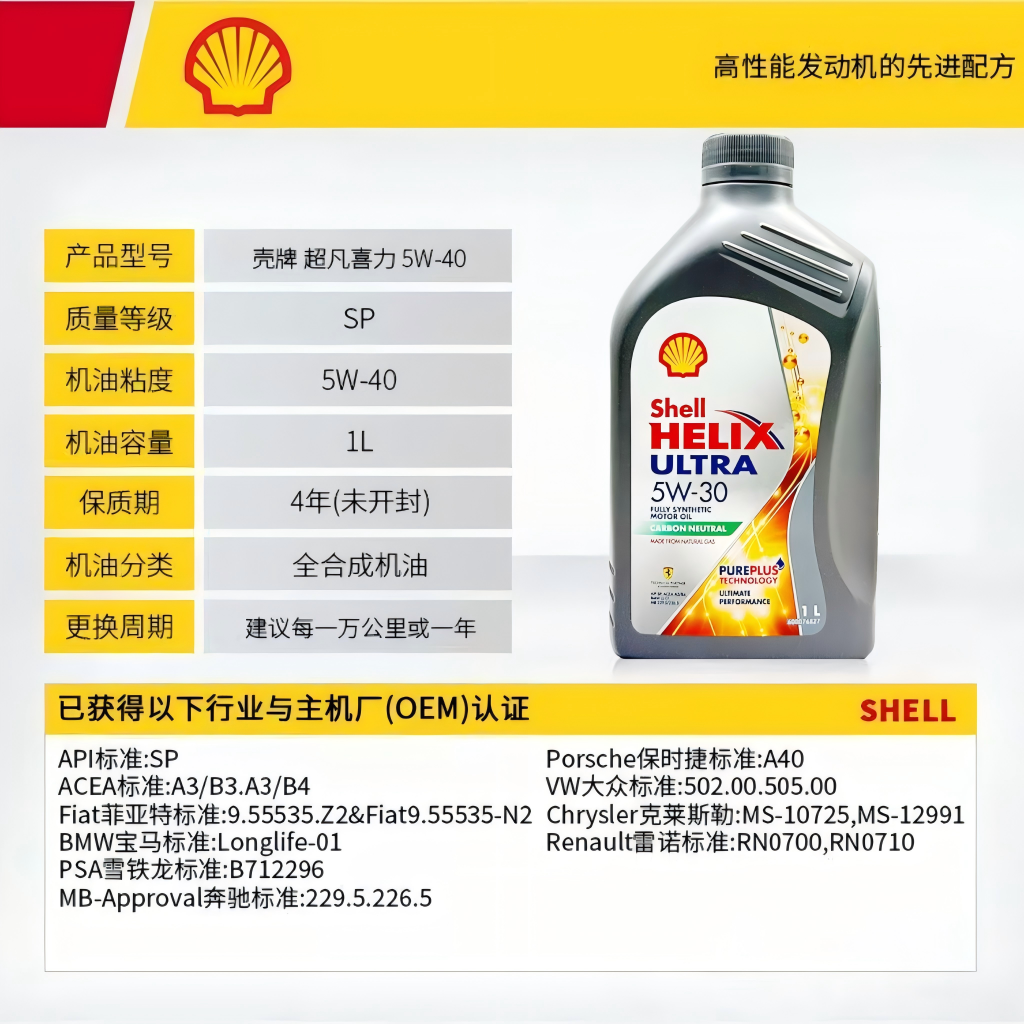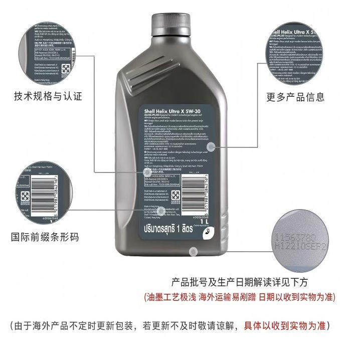 Shell/壳牌灰壳机油5W-30全合成机油超凡喜力汽车机油1L 原装进口