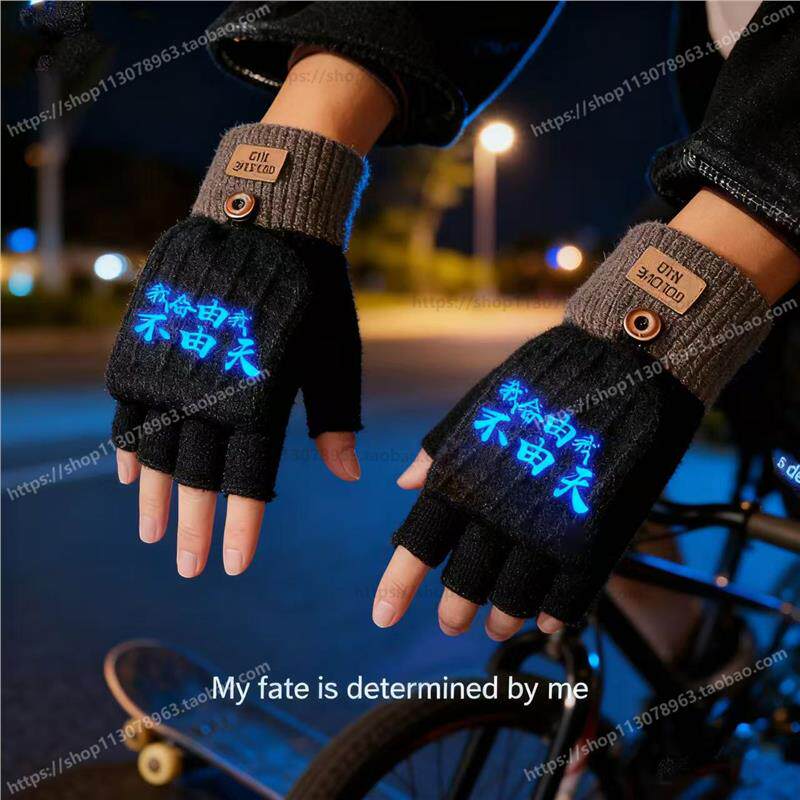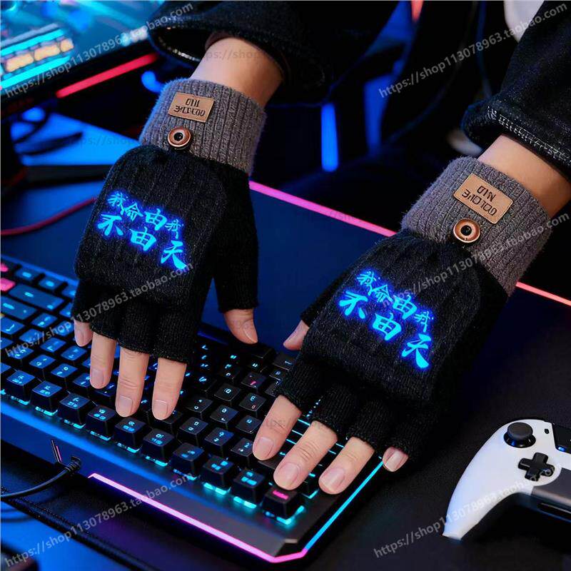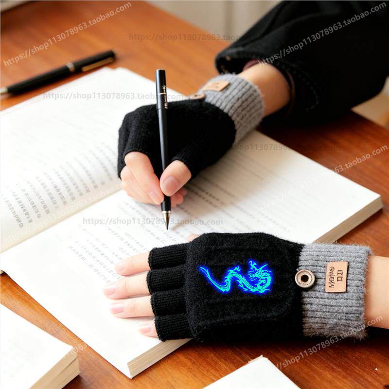 半指翻盖手套冬季儿童大童加绒防寒保暖毛线秋冬露指半截学生写字
