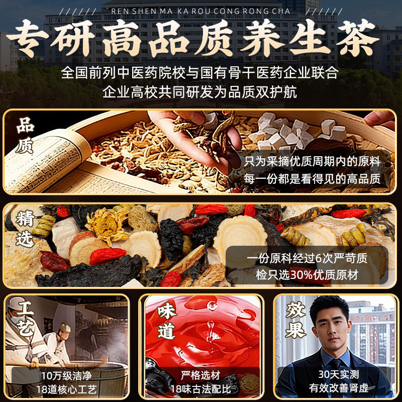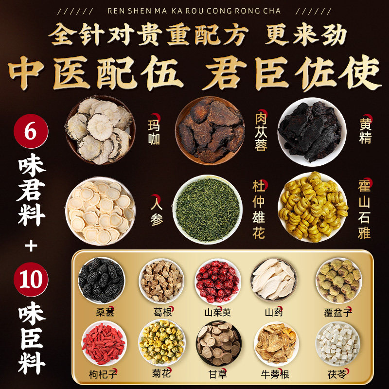 同仁堂人参枸杞玛咖黄精肉苁蓉杜仲八宝茶男人熬夜补精强肾养生茶