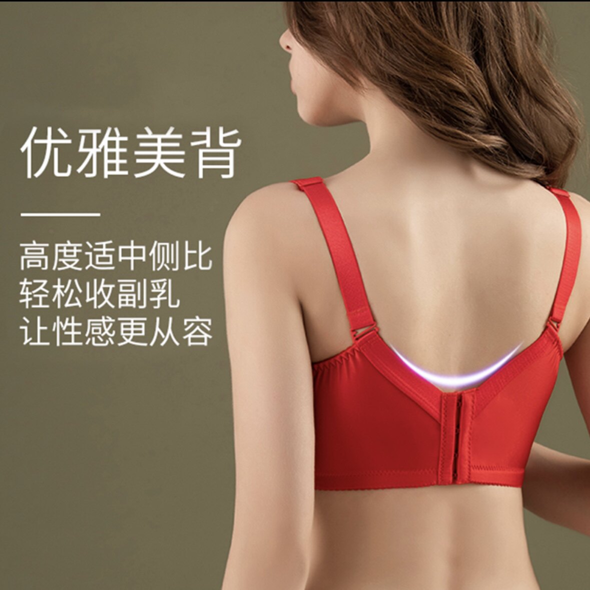 润微提拉女王内衣女大胸显小红色大码调整形聚拢收副乳防下垂文胸