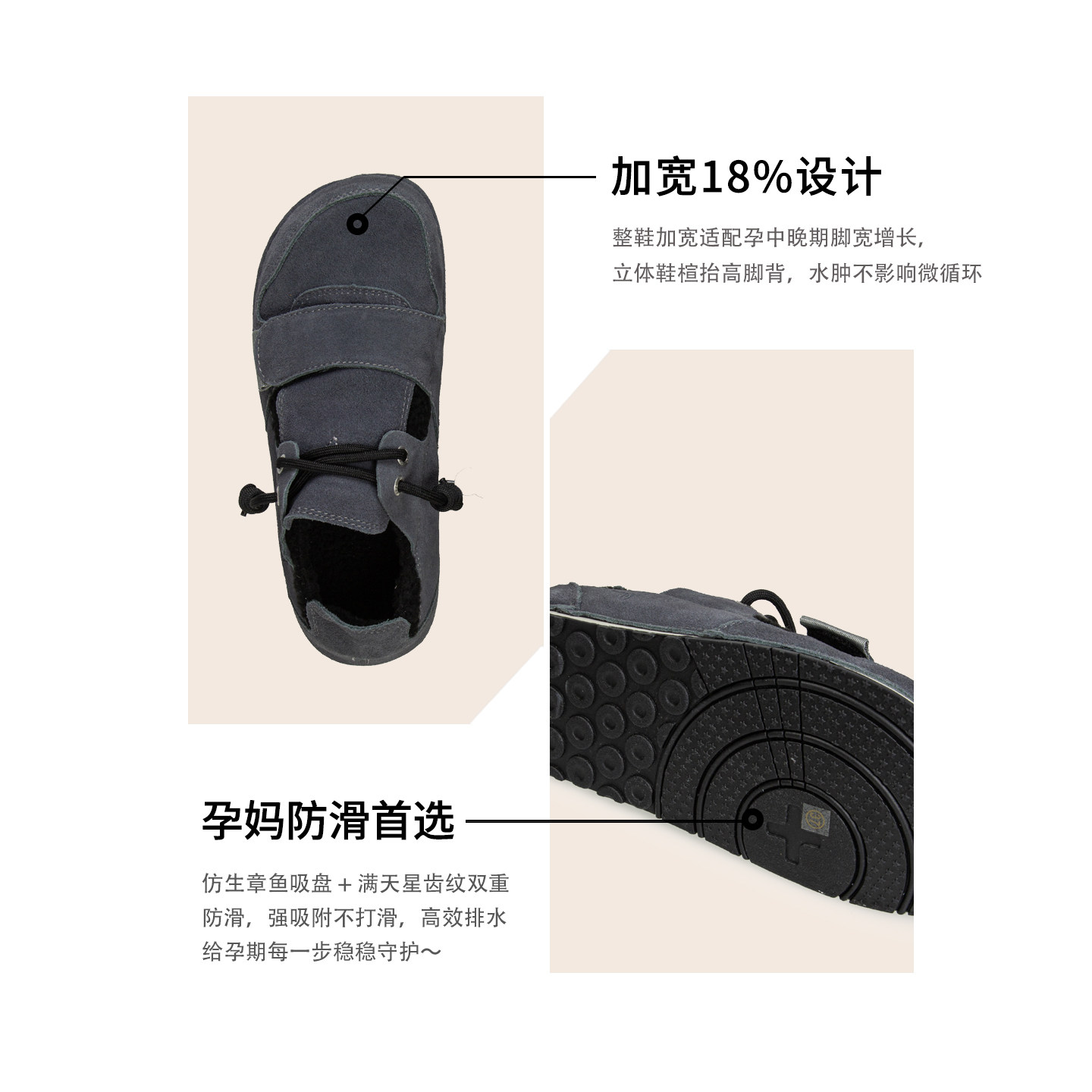 THEMULE灰色丑萌鞋宽楦勃肯鞋女加绒一脚蹬大头鞋孕妇鞋防滑棉鞋