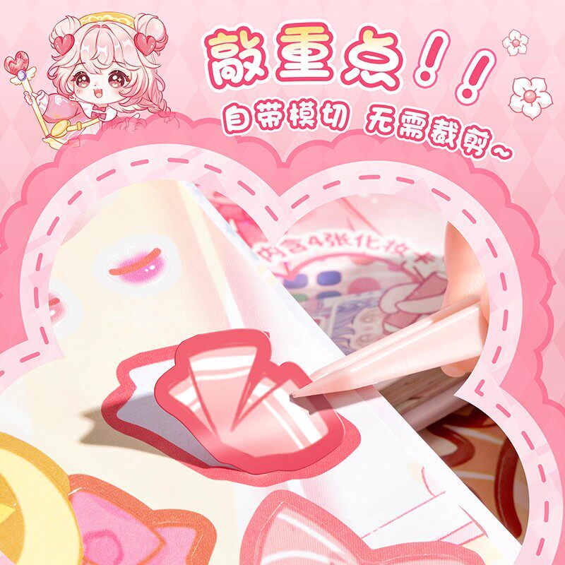 公主化妆贴纸本美妆贴画手账素材可爱卡通换装材料包装饰小图案女孩儿童化妆美甲装饰合集本网红爆款粘贴玩具