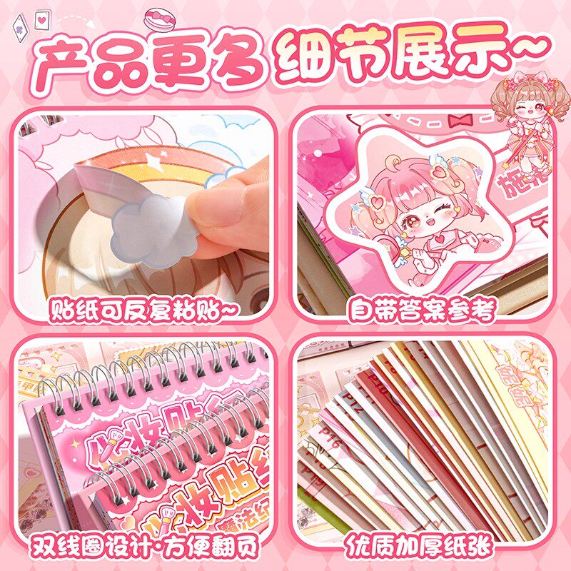 萌崽新款学霸学渣果冻贴纸安静书儿童免裁剪手工粘贴DIY女孩趣味玩具