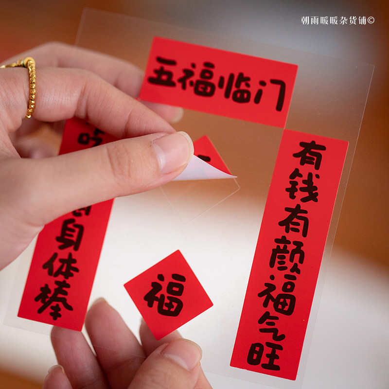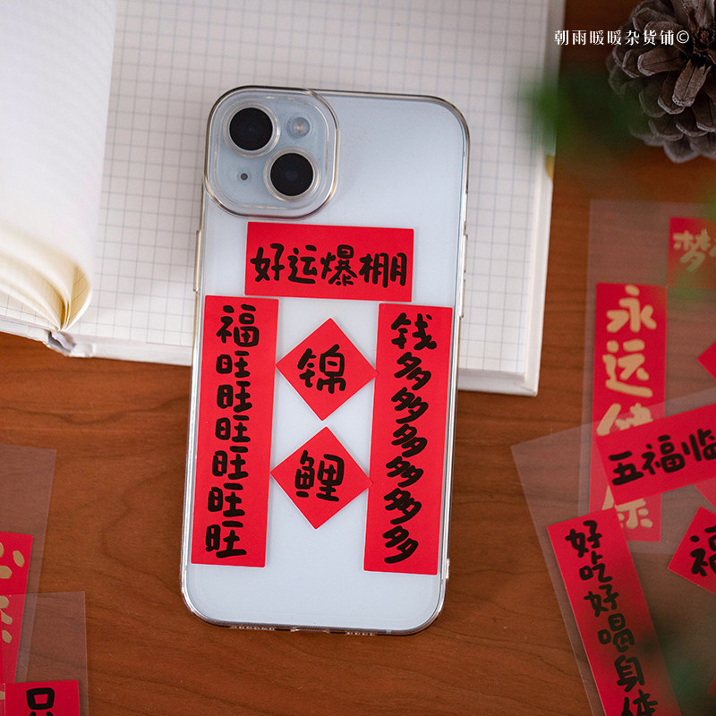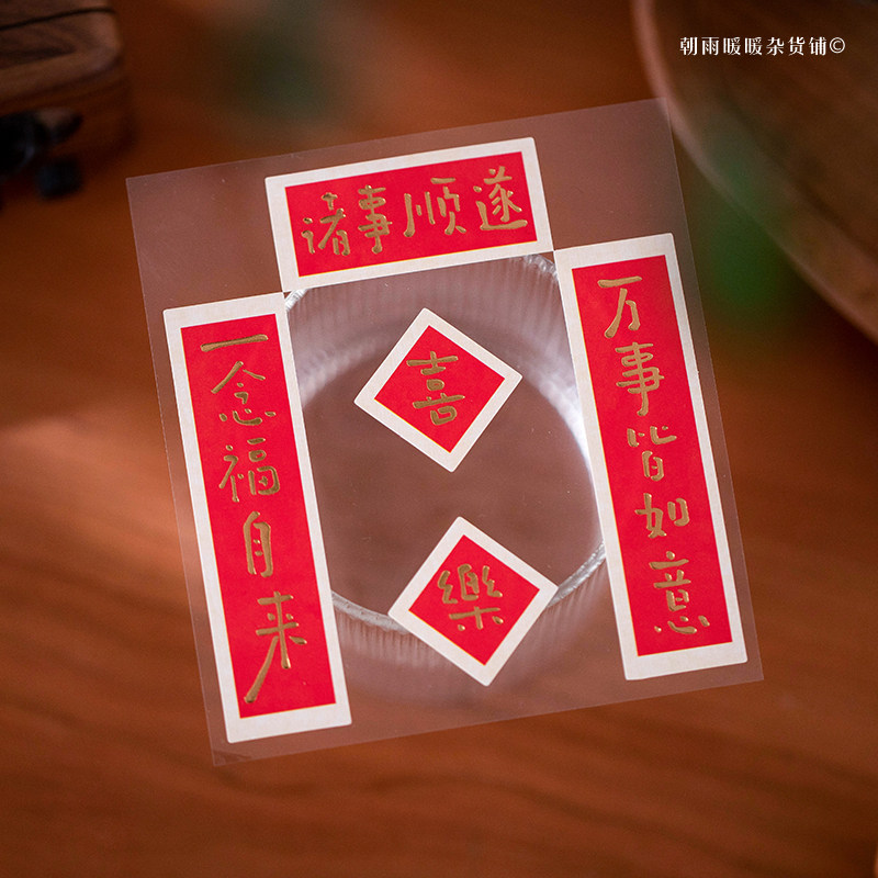 朝雨 烫金迷你对联贴纸中国风书法mini新年对联手帐diy装饰贴画
