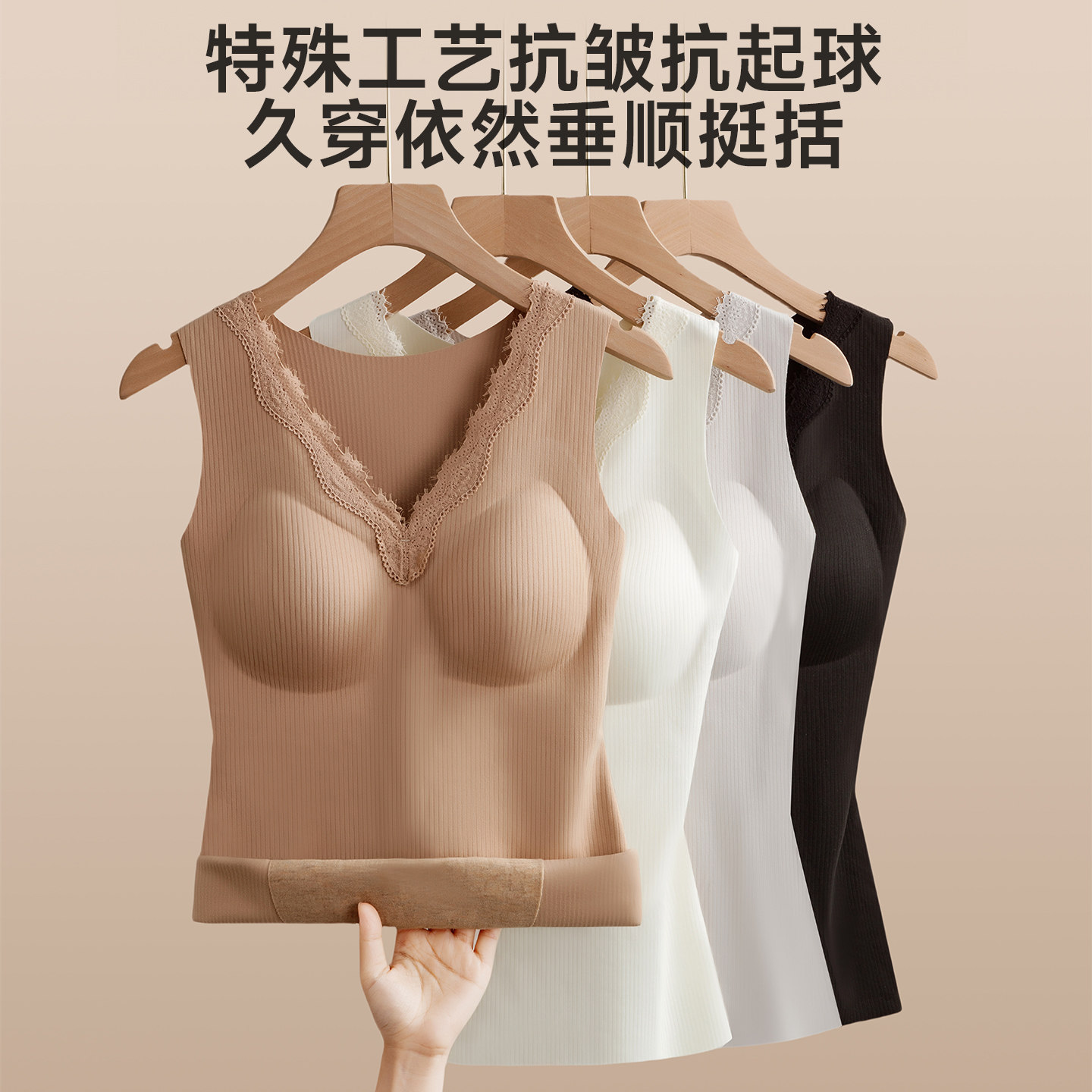 秋冬无痕保暖背心女带胸垫加厚德绒吊带内衣自发热一体打底上衣