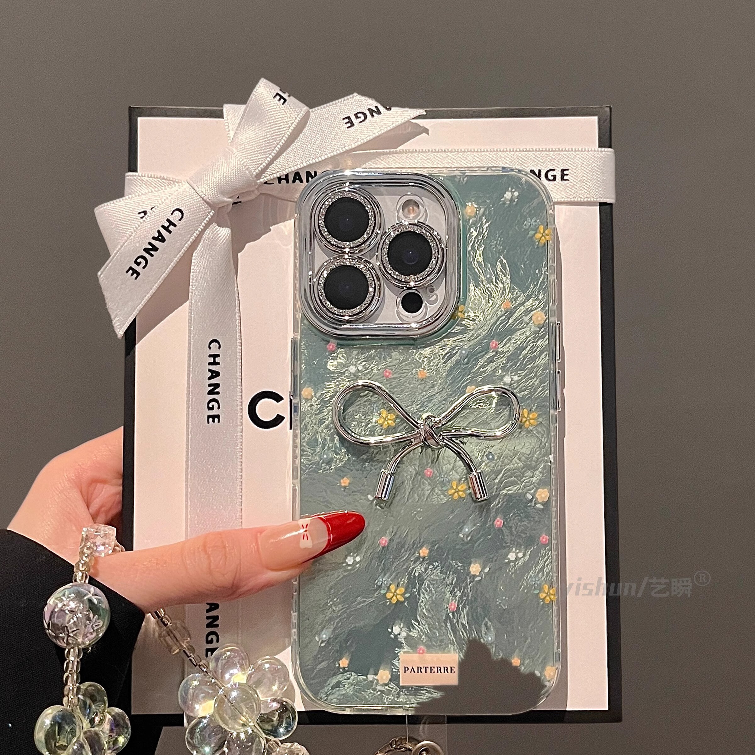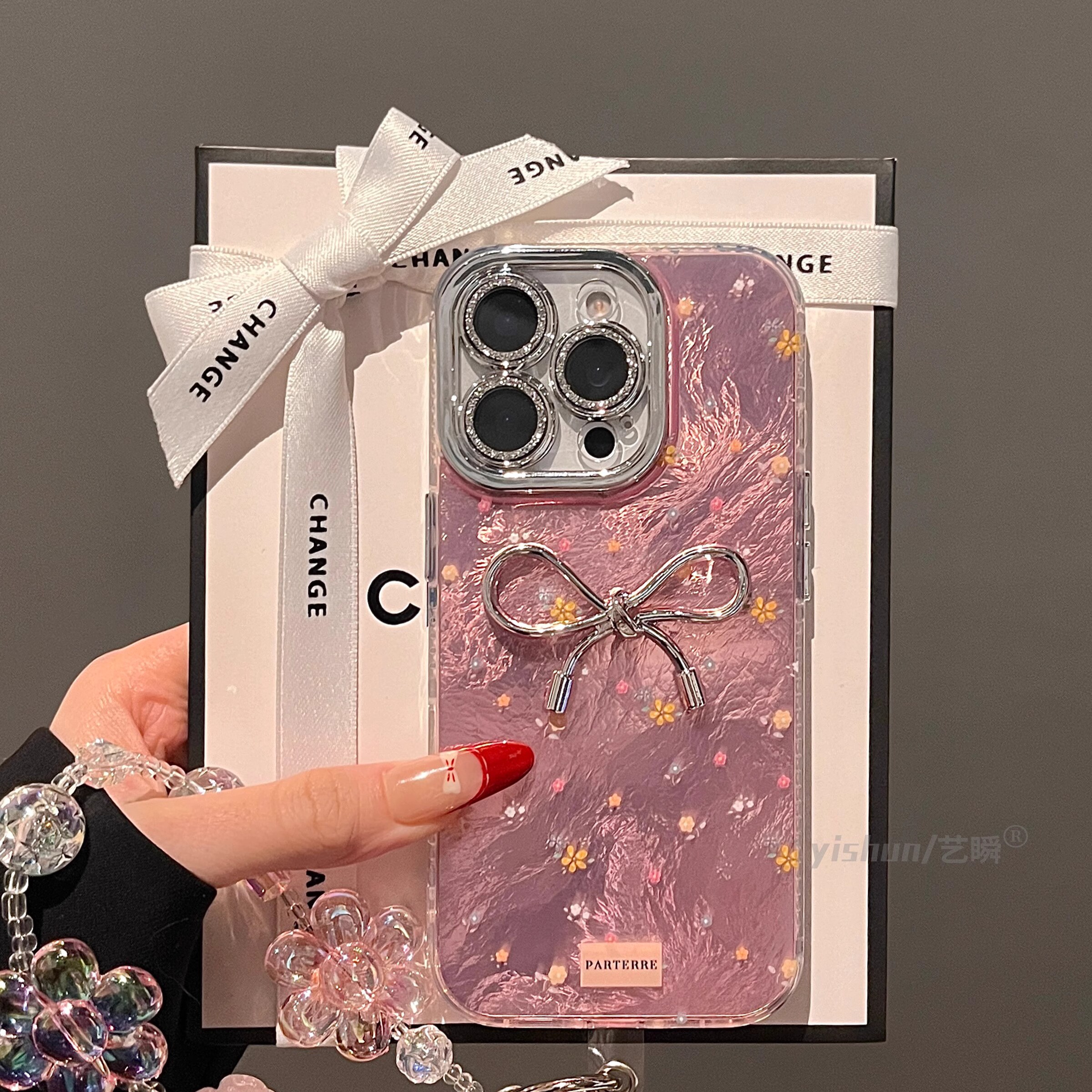 适用苹果16promax手机壳新款iphone17pro高级感15plus简约ins小清新蝴蝶结13挂绳14女款pm全包防摔12超火个性