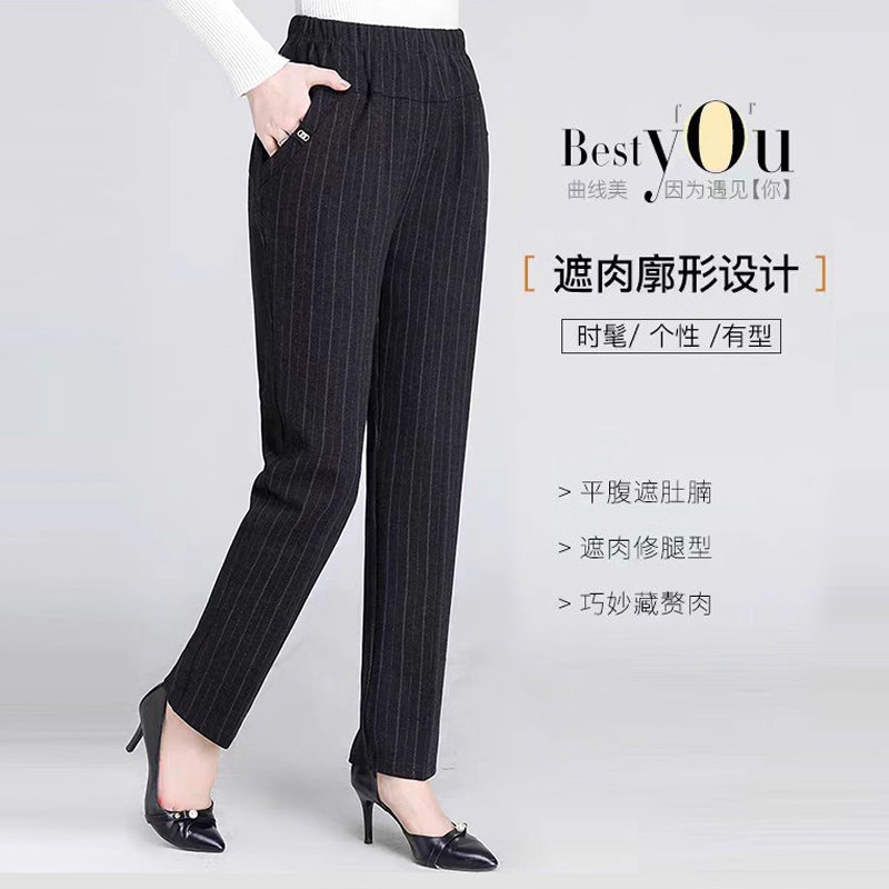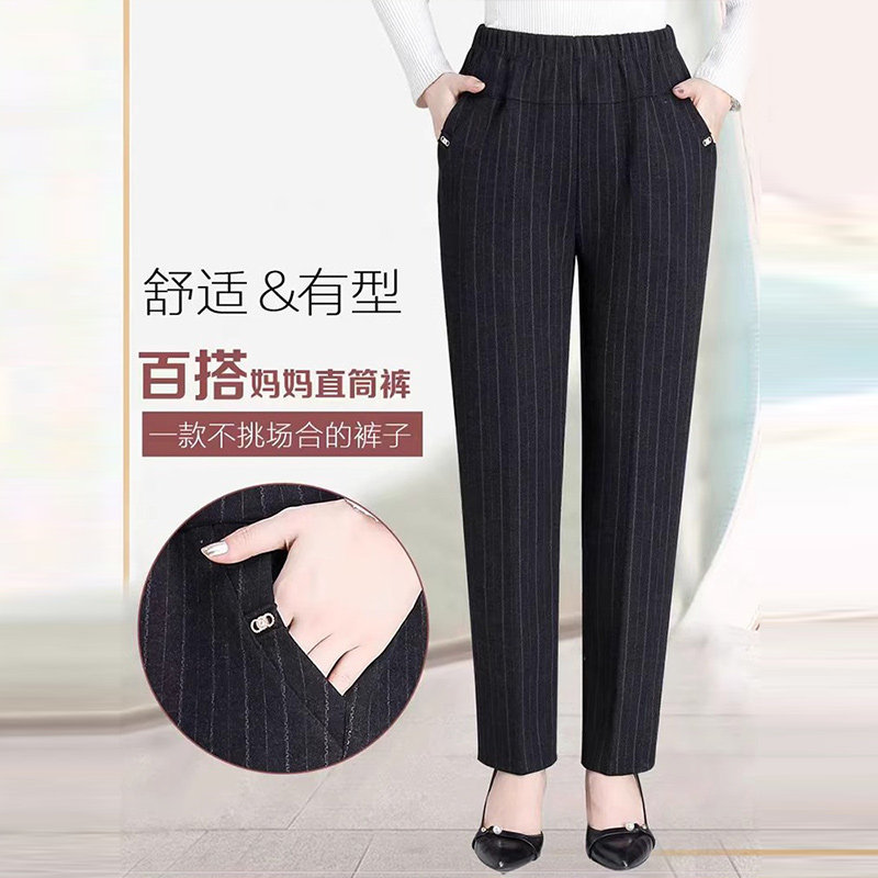 妈妈裤子春秋款松紧高腰弹力中老年女裤宽松大码直筒奶奶加绒长裤