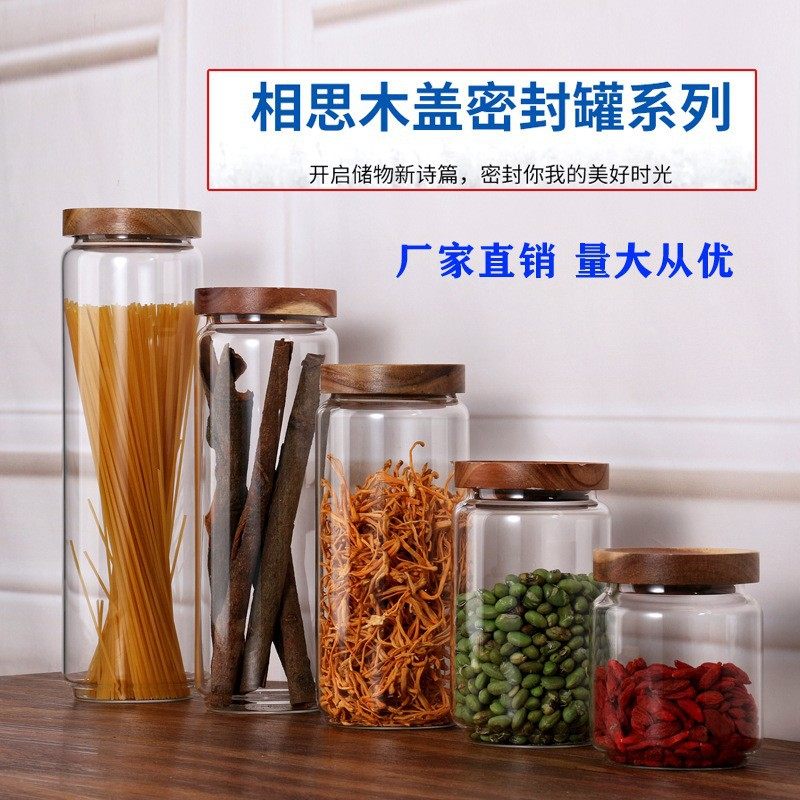 高硼硅玻璃密封罐加厚相思木盖子储物罐收纳瓶防潮咖啡罐便携