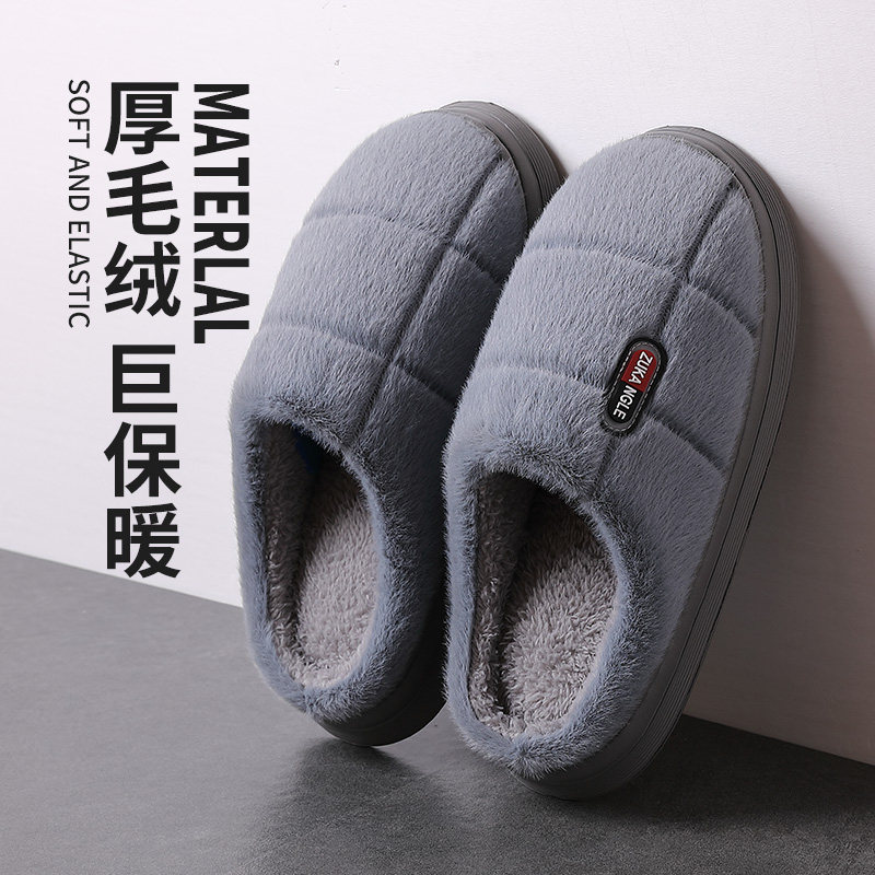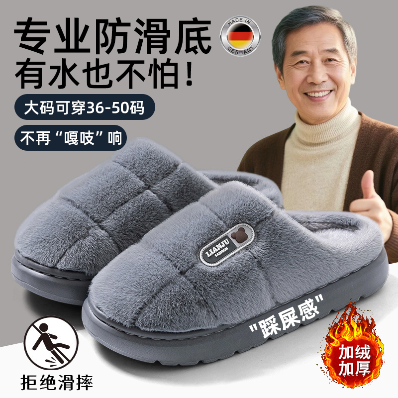 大码男士棉拖鞋冬季外穿2025新款室内家居厚底保暖防滑毛绒拖鞋男