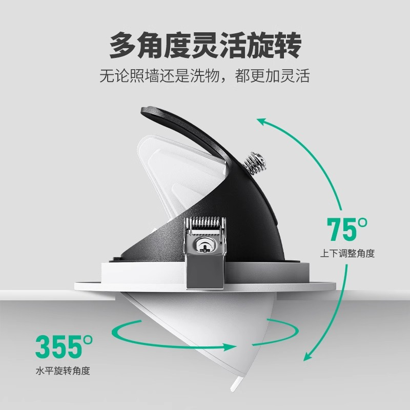 象鼻灯led射灯嵌入式服装店专用4500k聚光天花灯商用建材开孔角度