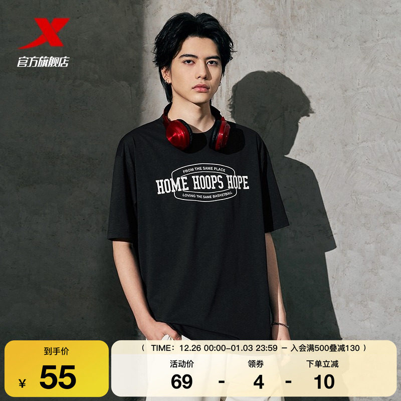 特步篮球短袖男2025年新款夏季宽松休闲男装百搭T恤运动潮流半袖
