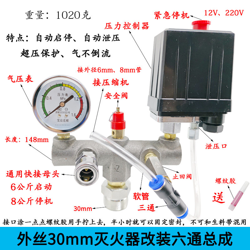 空调冰箱压缩机改装静音空压机配件电动开关总成自制打气泵灭火器
