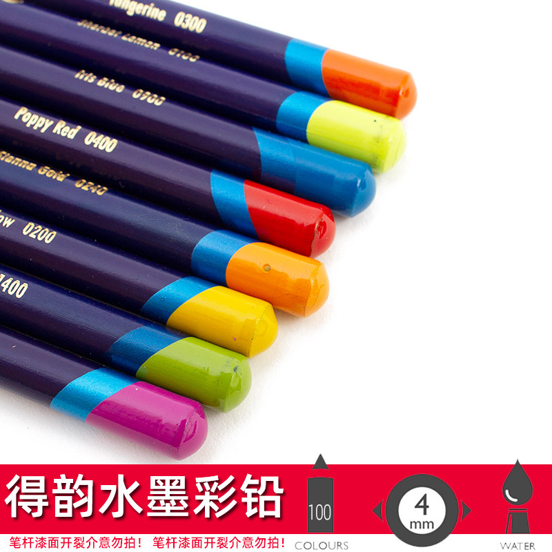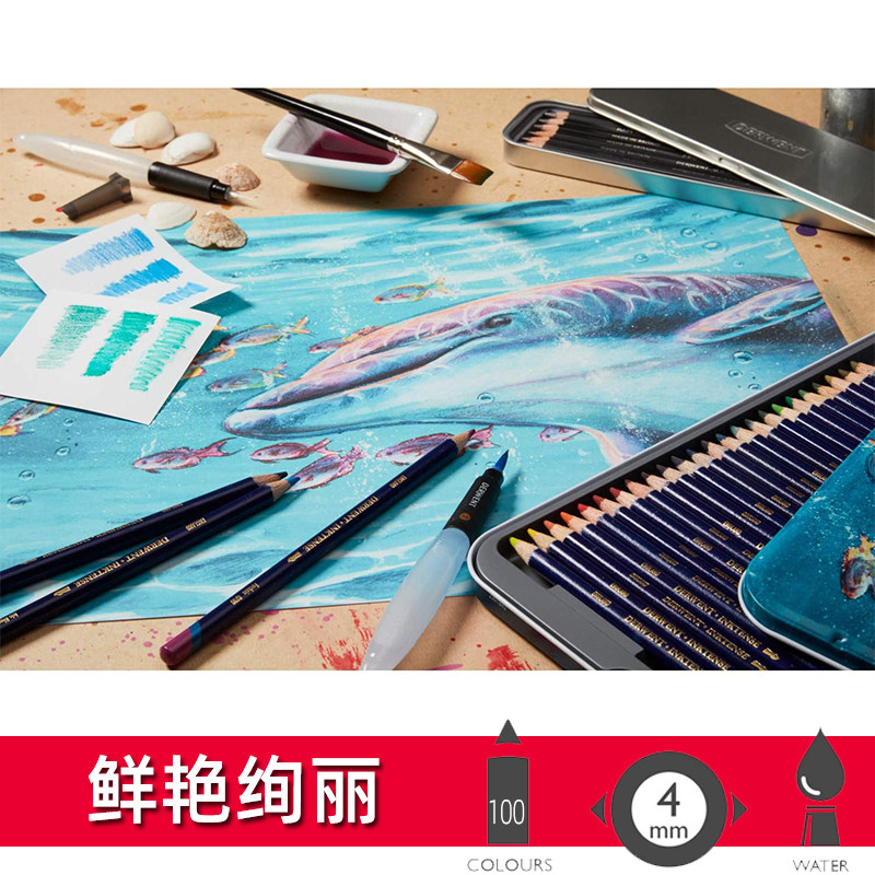 进口得韵水墨彩铅Derwent Inktense水溶铅笔12-100色铁盒木盒套