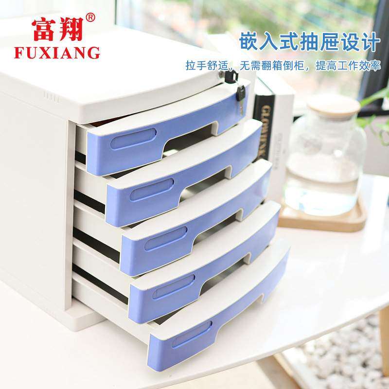 办公室桌面文件柜A4带锁塑料分层分隔储物收纳四层抽屉商业钥匙箱
