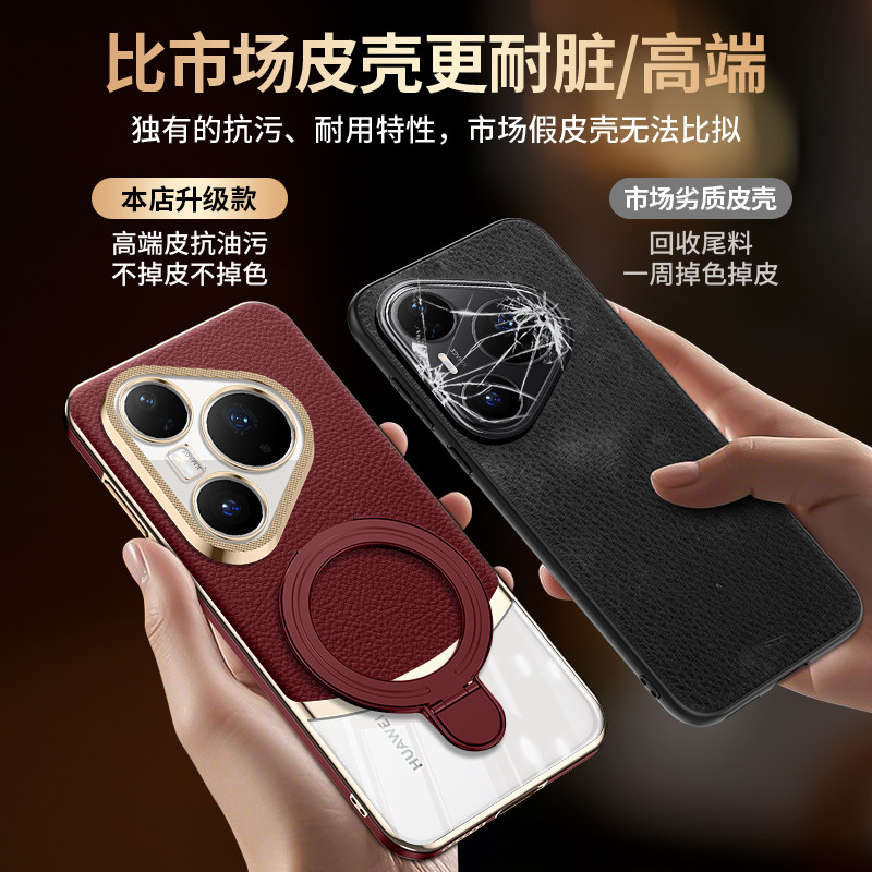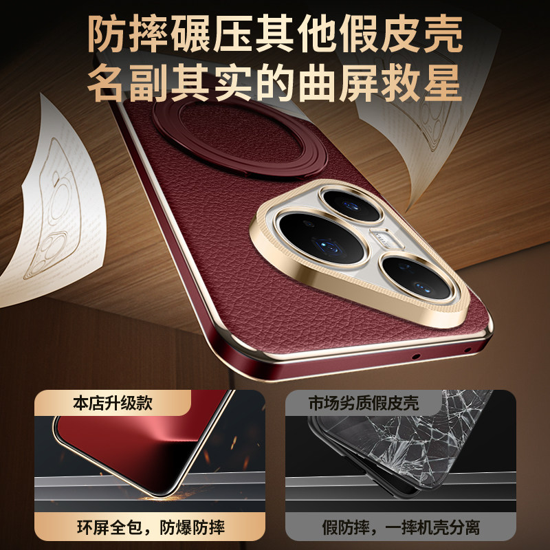 鸿锦富适用华为mate70pro手机壳新款mate70air镜头全包防摔Mate70pro十优享版超薄m70+磁吸支架男士真皮外壳