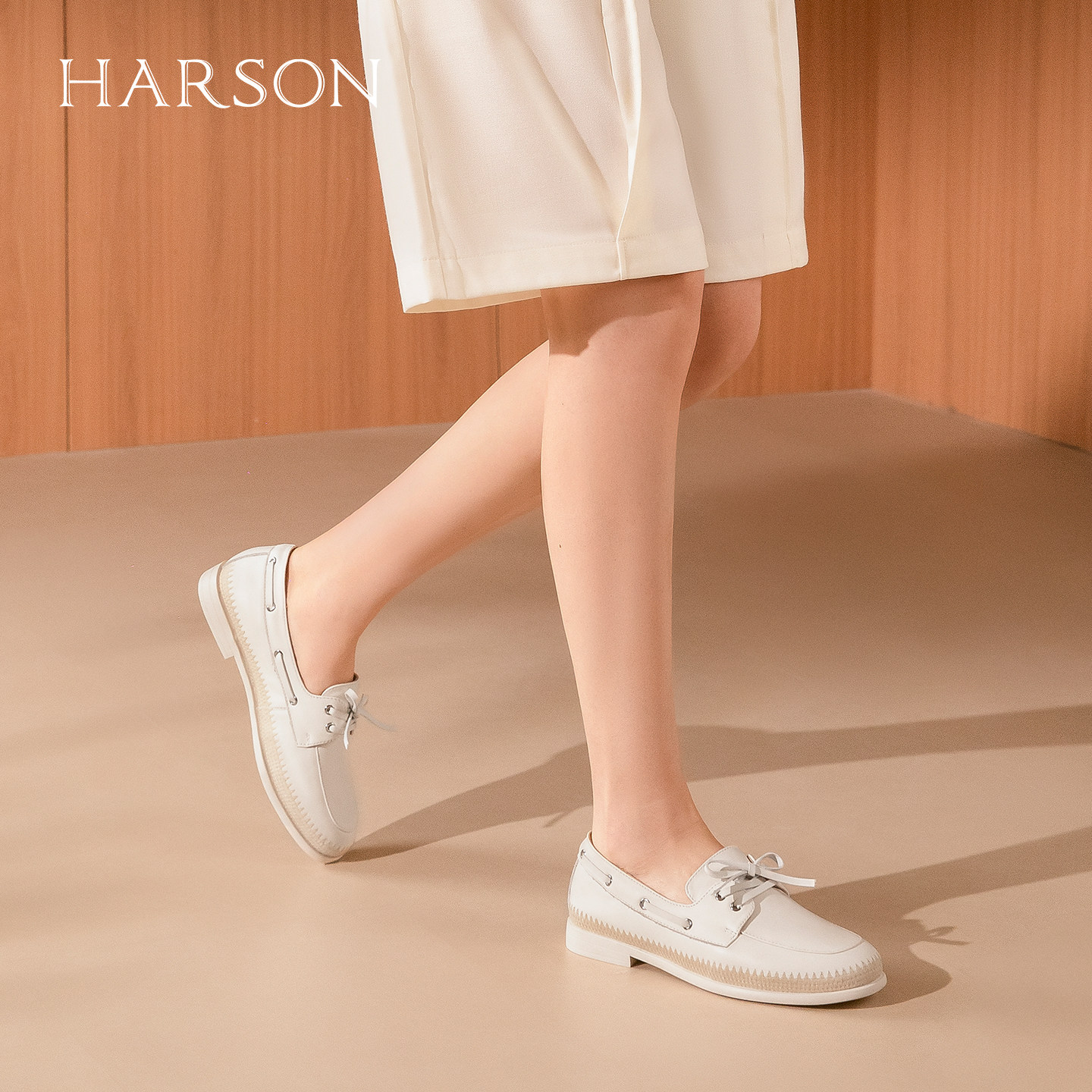 哈森复古风系带乐福鞋圆头粗跟简约休闲豆豆鞋2026新款HWS260182