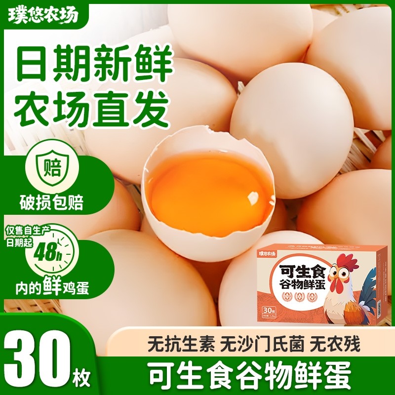 璞悠可生食30枚无菌无抗无药残农场直发土鸡蛋谷物鸡蛋礼盒抗生素