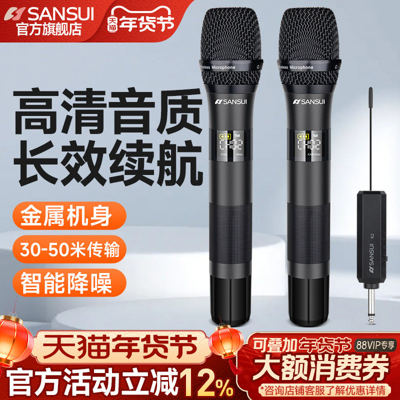 山水家用无线话筒麦克风U段调频Ktv专用K歌卡拉OK会议音响麦克风