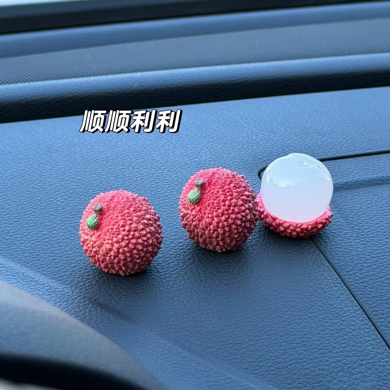 【新车礼物-事事顺荔】车载屏幕装饰品可爱小荔枝汽车中控台摆件