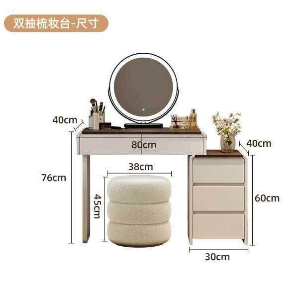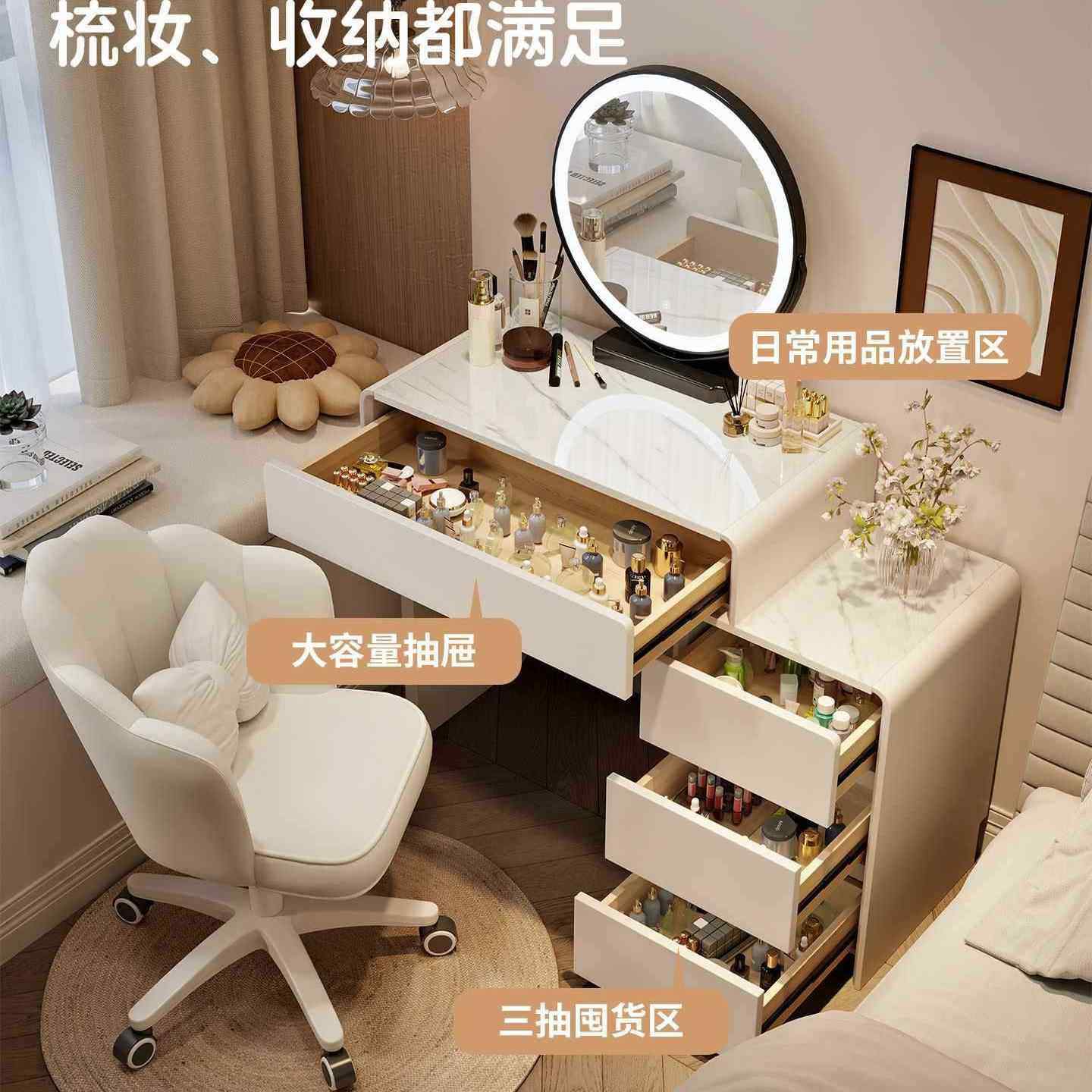 实木小户型梳妆台卧室现代简约2025新款主卧奶油风化妆桌斗柜一体
