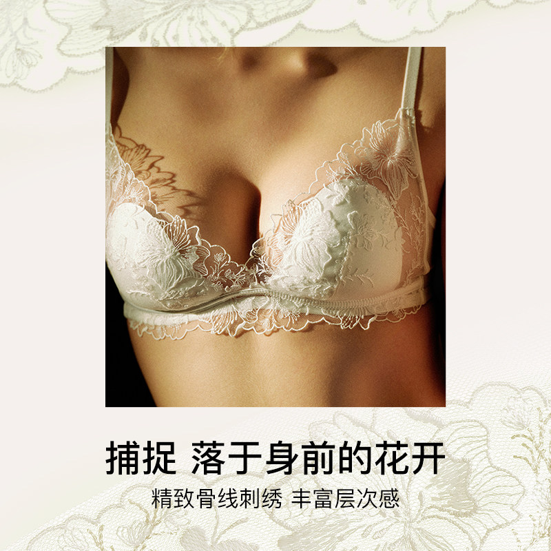 ubras无尽花海春日蕾丝性感大胸显小胸无痕薄款文胸内衣套装新品