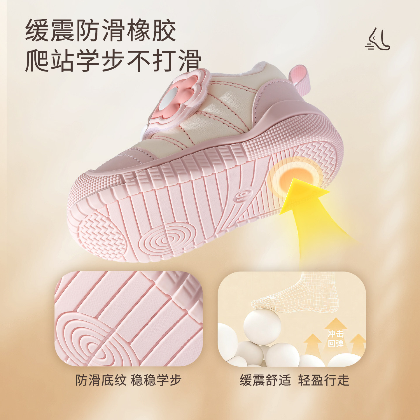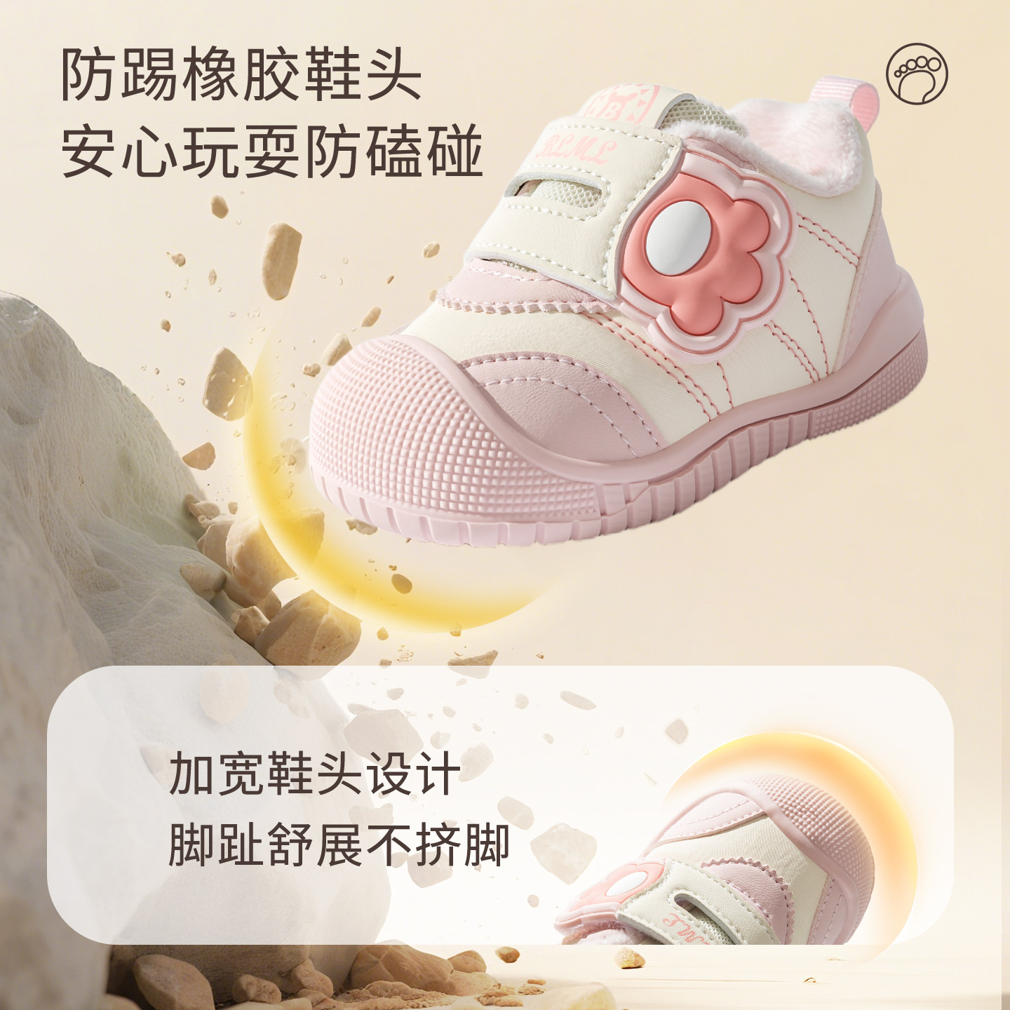 婧麒宝宝加绒学步鞋2025冬季新款1-3岁婴幼儿机能鞋软底保暖棉鞋