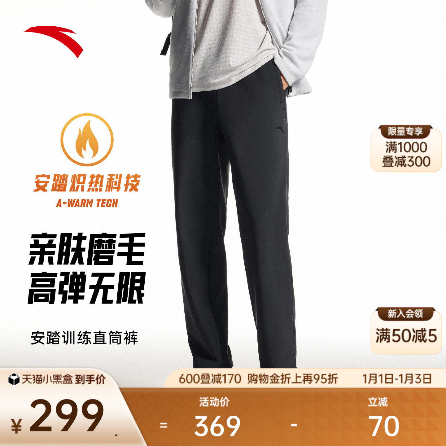 安踏CHN系列丨安踏运动长裤男磨毛保暖直筒跑步运动裤152547501N