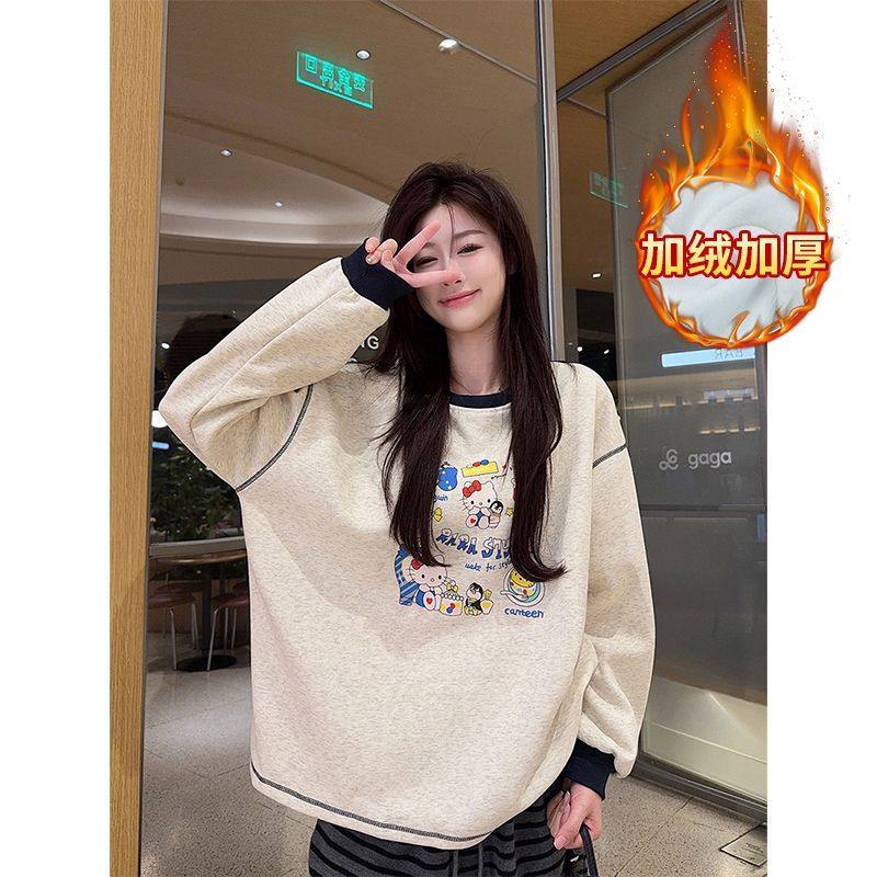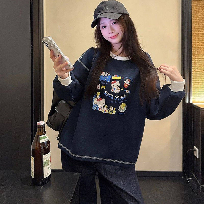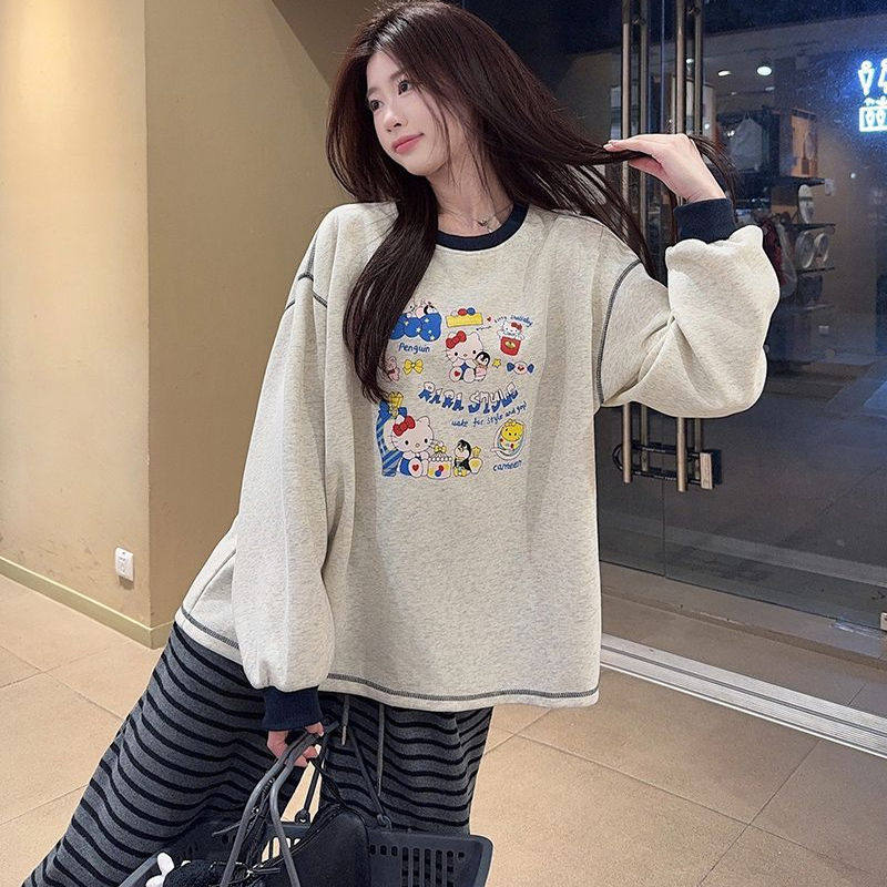 婧麒孕妇T恤韩版卡通印花长袖T恤女宽松圆领上衣可爱休闲风