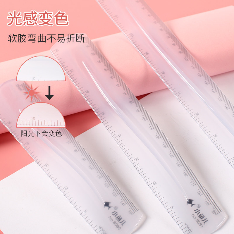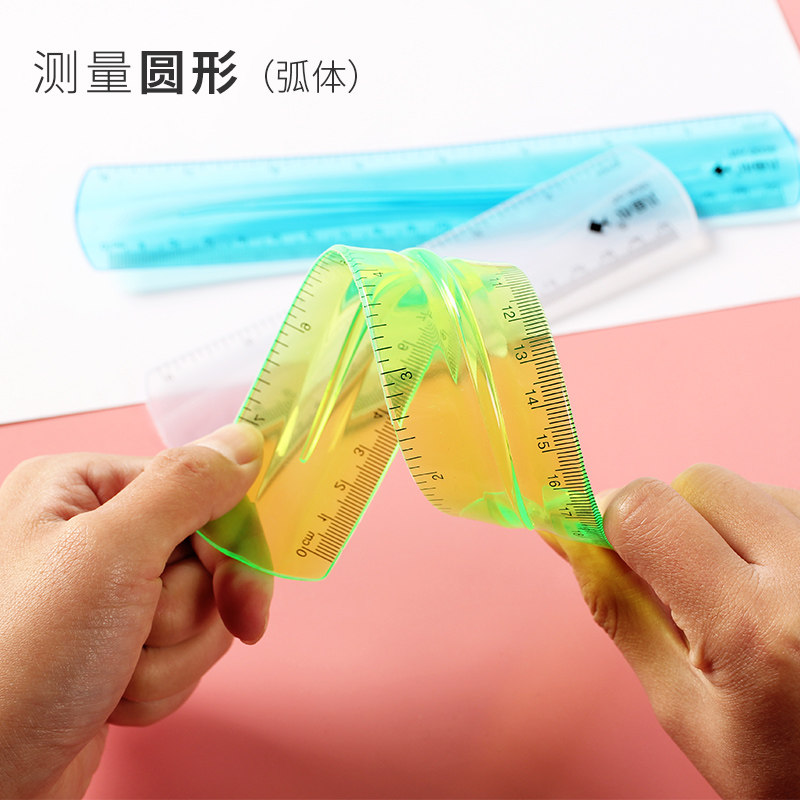 软尺子软胶弯曲折不断小学生文具专业测量工具多功能透明塑料直尺15cm20厘米日韩可爱绘图长折叠尺30cm儿童用