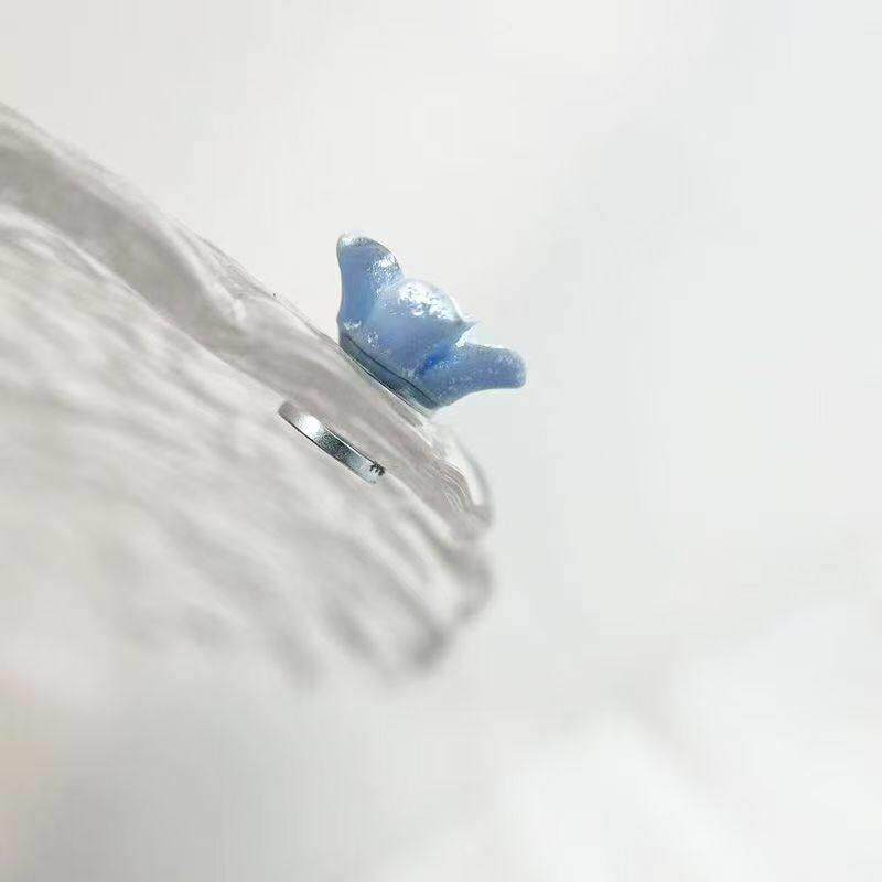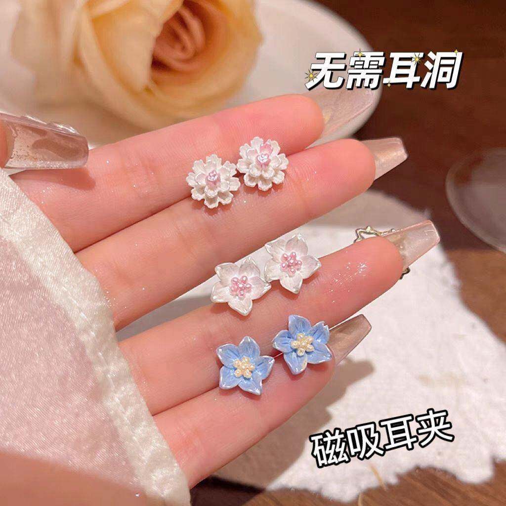 小清新蓝色山茶花磁吸耳夹免打孔无耳洞耳钉甜美高级感花骨朵耳饰