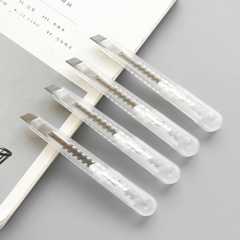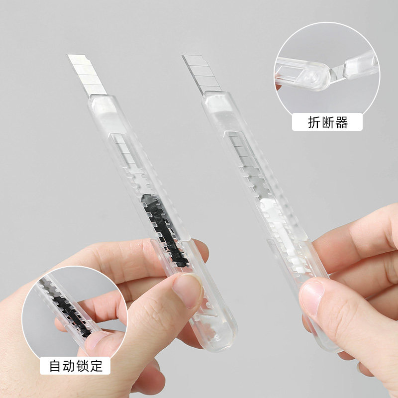 ins简约半透明便携美工刀 快递纸箱开箱工具办公开封刀不锈钢刀片