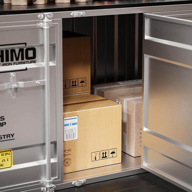 工业风储物柜铁艺餐边柜客厅收纳柜网红创意实木接待集装箱收纳柜