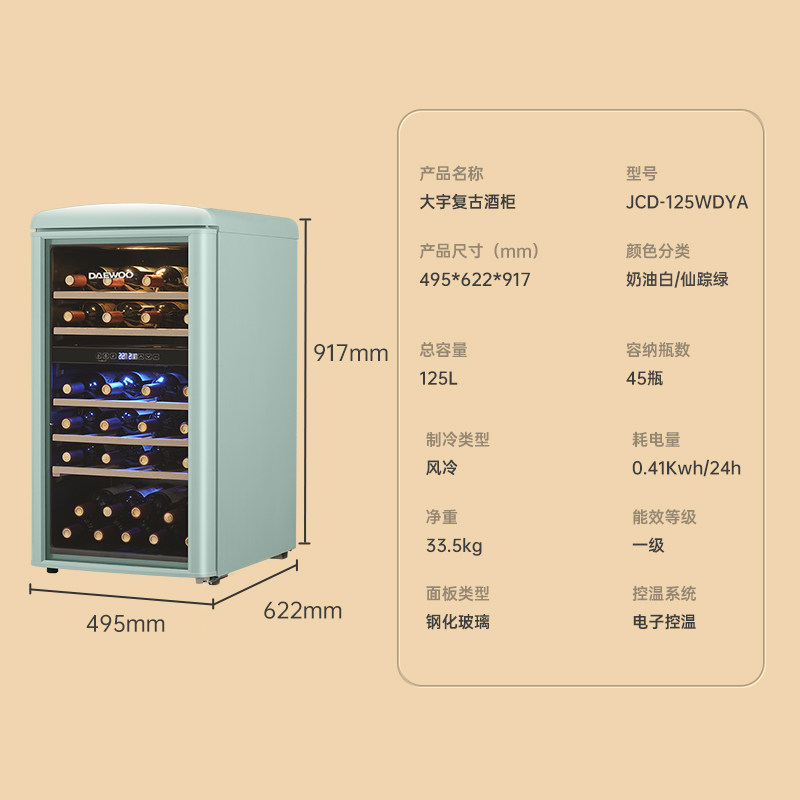 DAEWOO/大宇 JCD-125WDYA 恒温红酒柜风冷双温小型冰吧复古冷藏柜