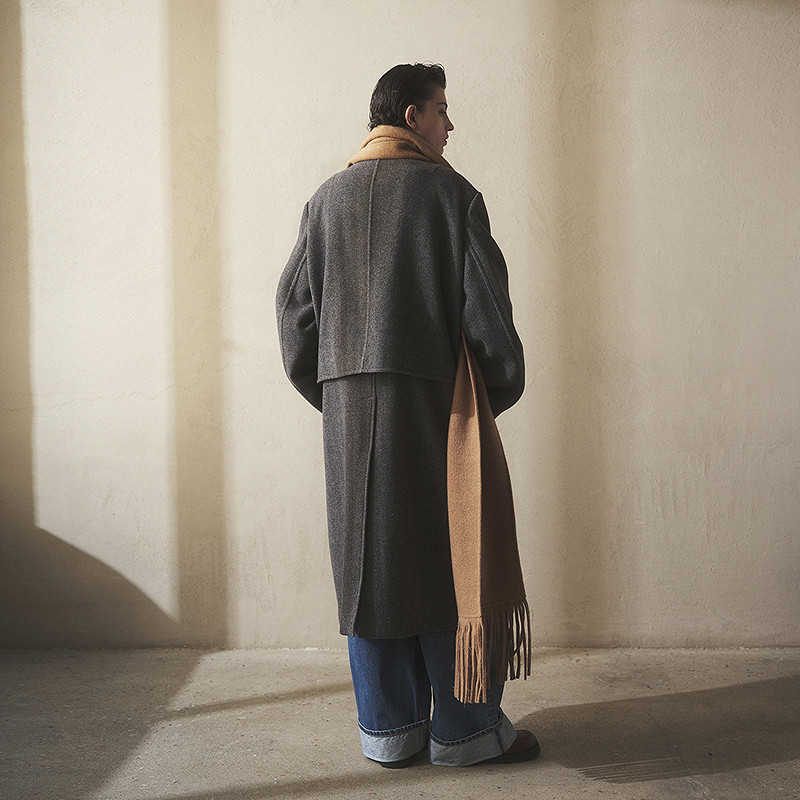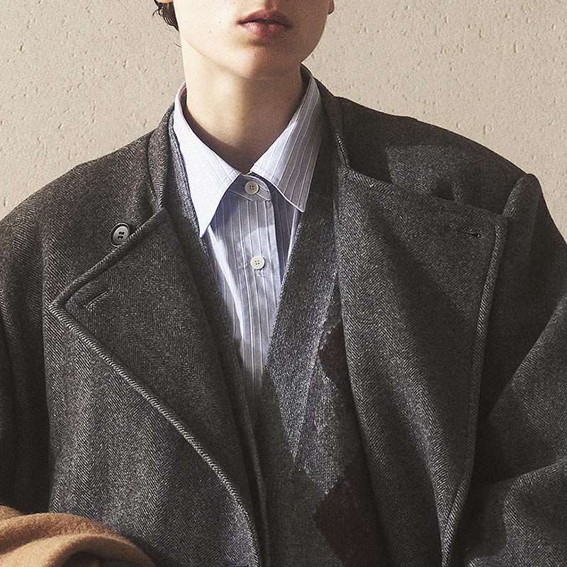 RUISHI芮时重磅驼绒桑蚕丝羊毛慵懒两穿领灰色毛呢大衣秋冬外套女