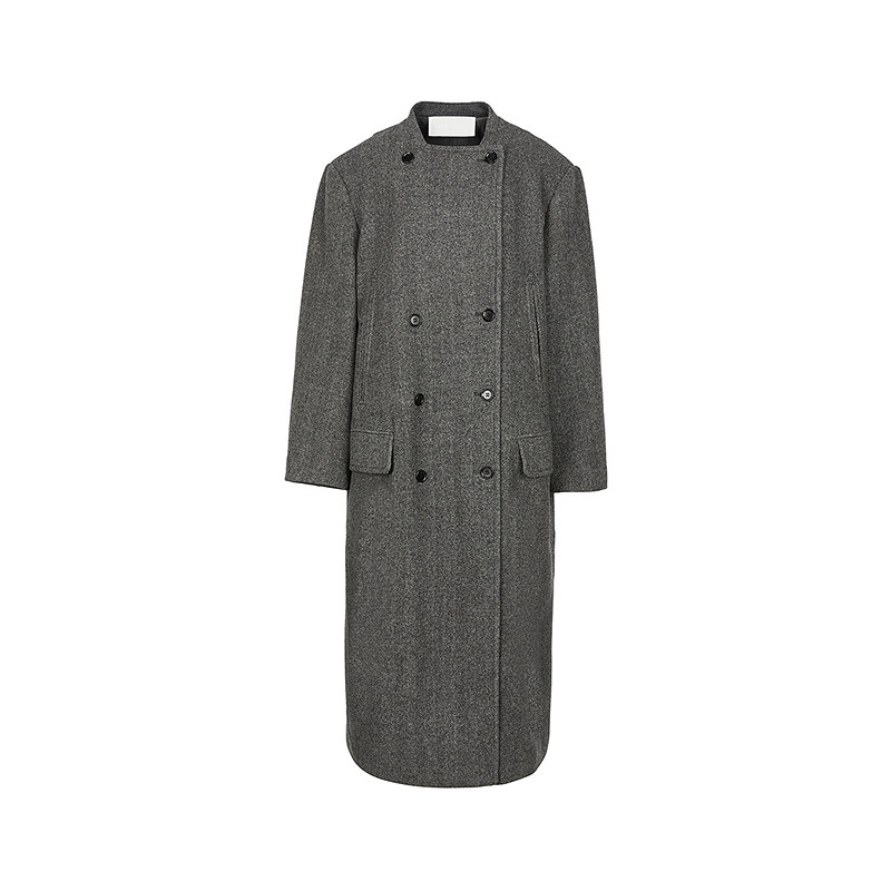 高端灰色双面羊毛大衣女长款2025新款韩版双排扣过膝毛呢外套