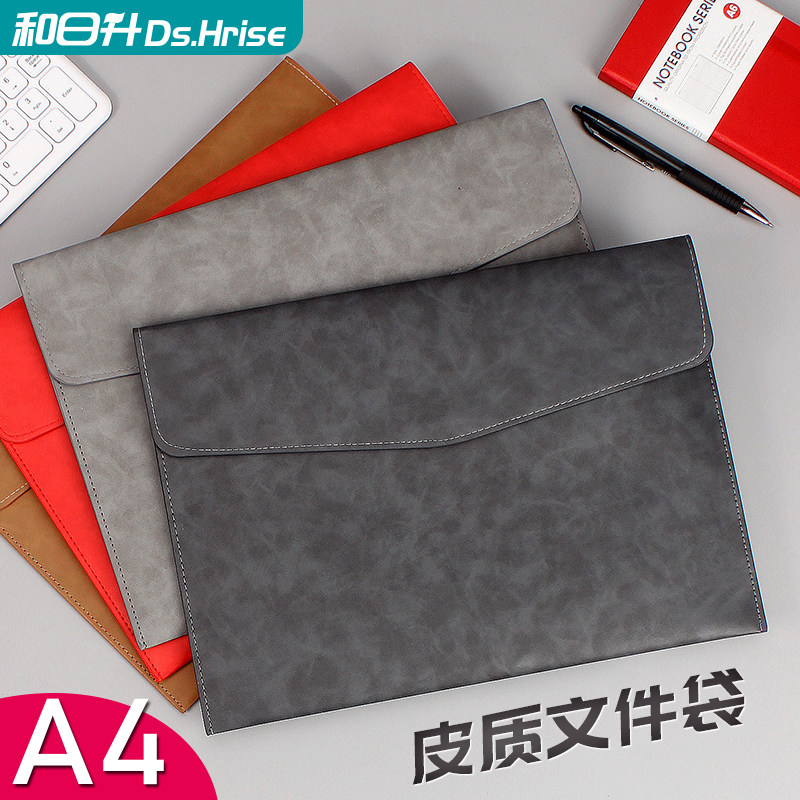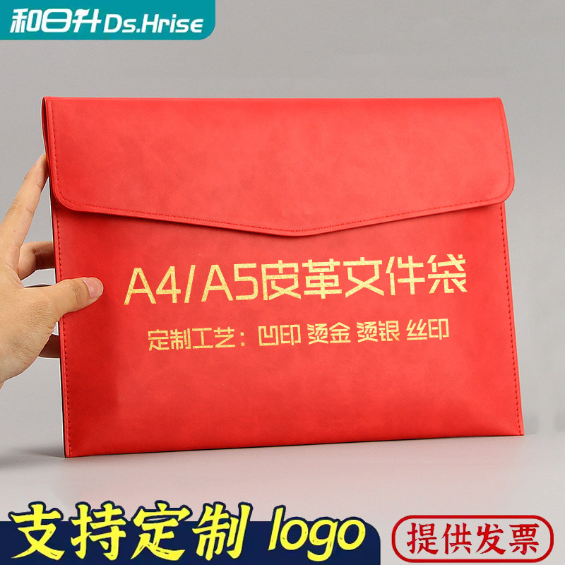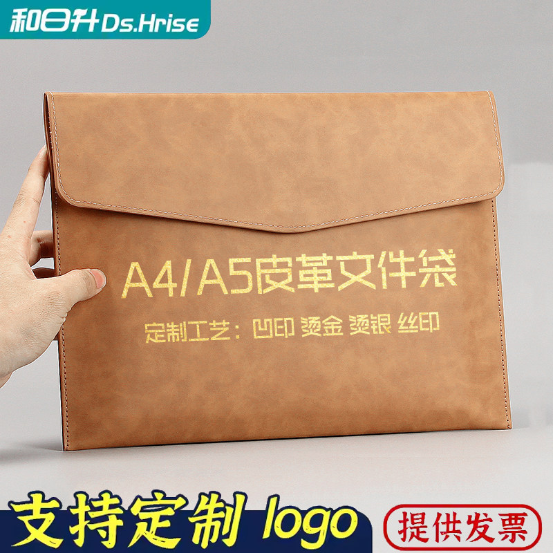 皮质文件袋可印logo定制A4纸档案袋文件夹文件包加厚防水资料按扣商务公文袋办公合同票据收纳手提便携大容量