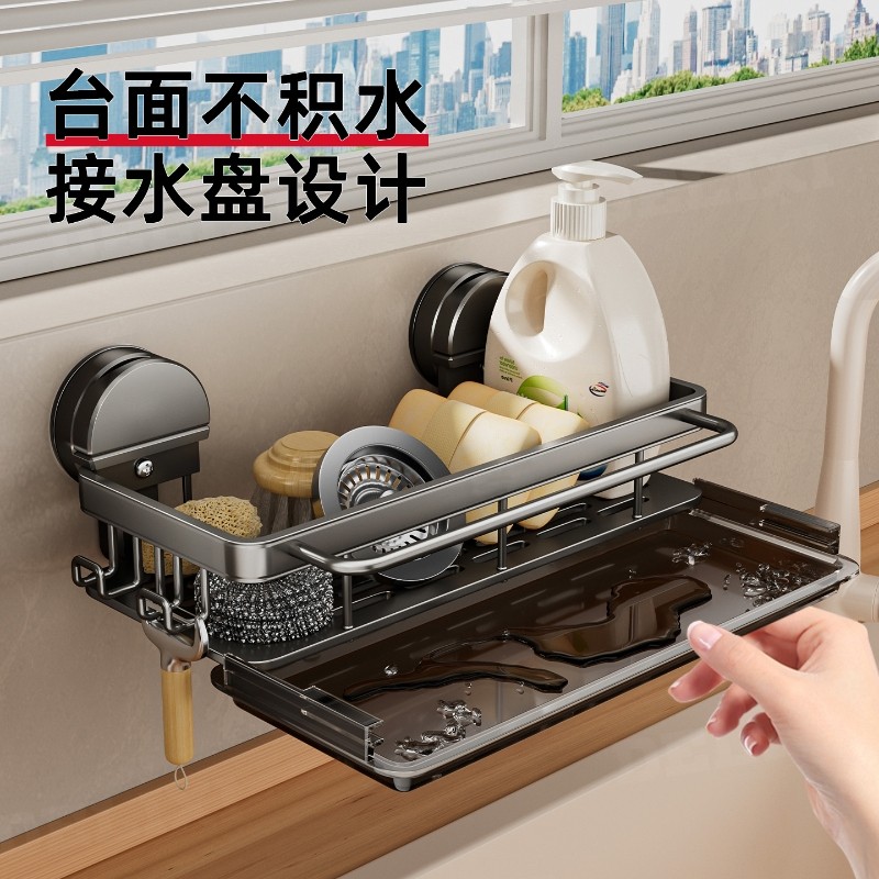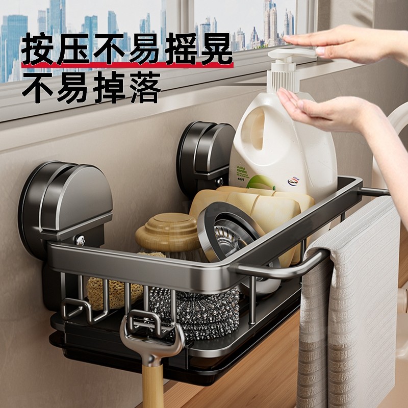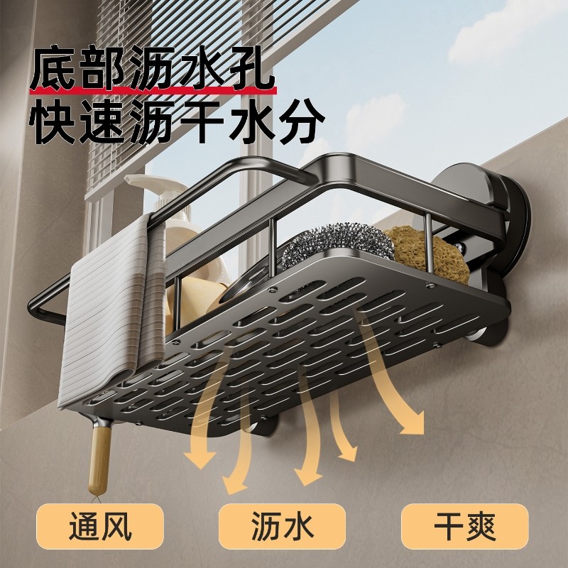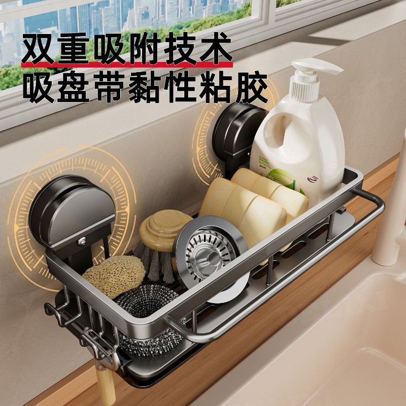 吸盘式厨房置物架抹布收纳沥水篮免打孔壁挂水龙头水槽调料架