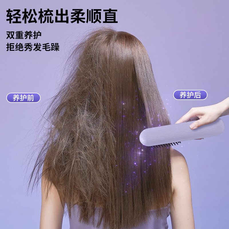 无线直发梳负离子不伤发便携直卷发棒两用直板夹电梳子高颅顶神器