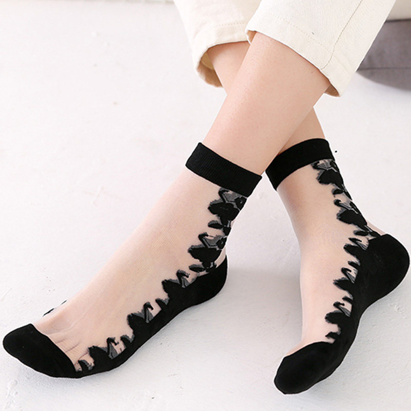袜子女春秋冰丝玻璃丝袜短水晶黑色中筒纯棉底防勾丝肉色透明耐磨